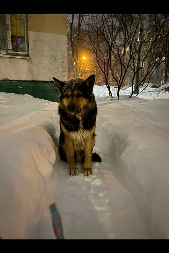 Несколько дней бегает щенок. На вид овчарка или очень близко, кажется мальчик (плохо было видно), до года. Окрас чёрный с рыжим, белая грудка. С места почти не уходит, кого-то ждёт.