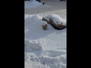 Собака со сломанной лапой выживает на улице, скитаясь по помойкам и грызя замёрзшие остатки еды. Она не может найти укрытия, и ни одна стая не приняла её. Мы заметили, что у неё на морде кровь — это может быть результатом травм или инфекций. 😢