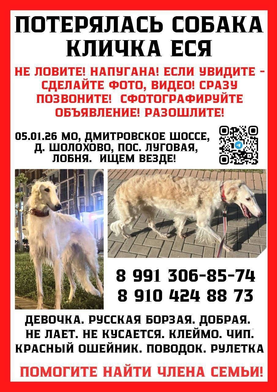 ‼️ИЩЕМ БОРЗУЮ!‼️ Пропала русская псовая борзая! Белая с..