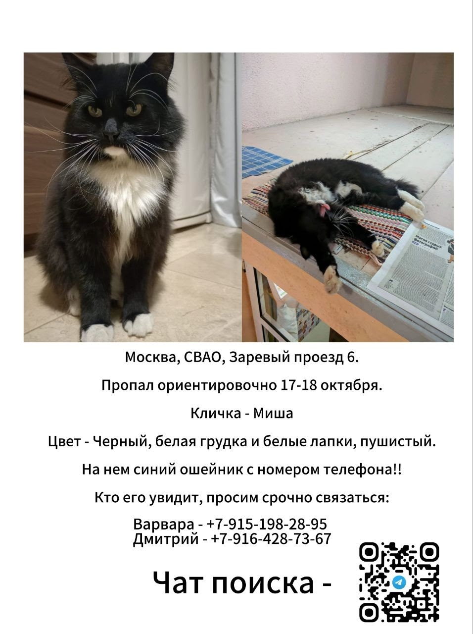 ‼️ПРОПАЛ КОТ‼️ Москва, СВАО, Заревый проезд 6. Пропал..