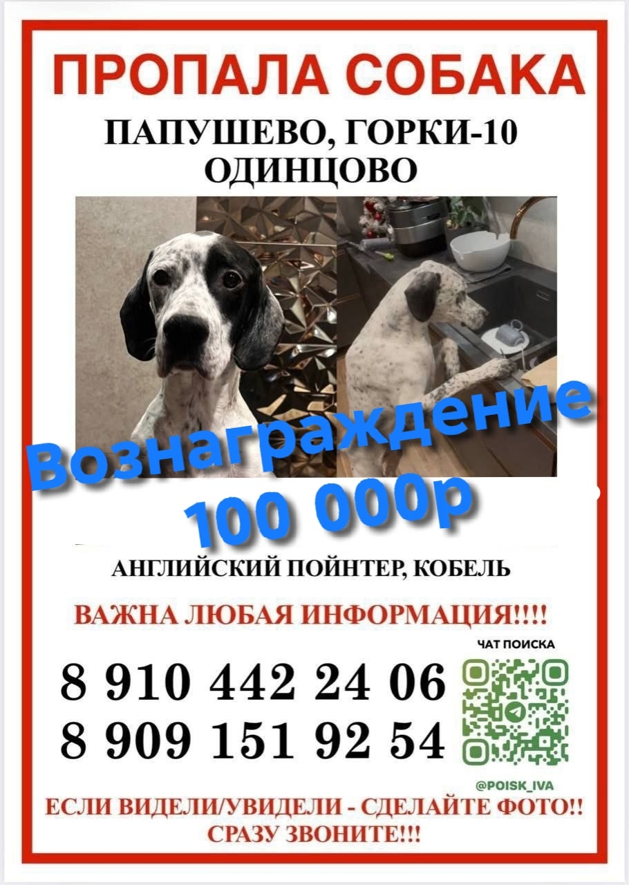 ‼️ПРОПАЛА СОБАКА‼️ МО, Одинцовский г.о. Может быть уже где..