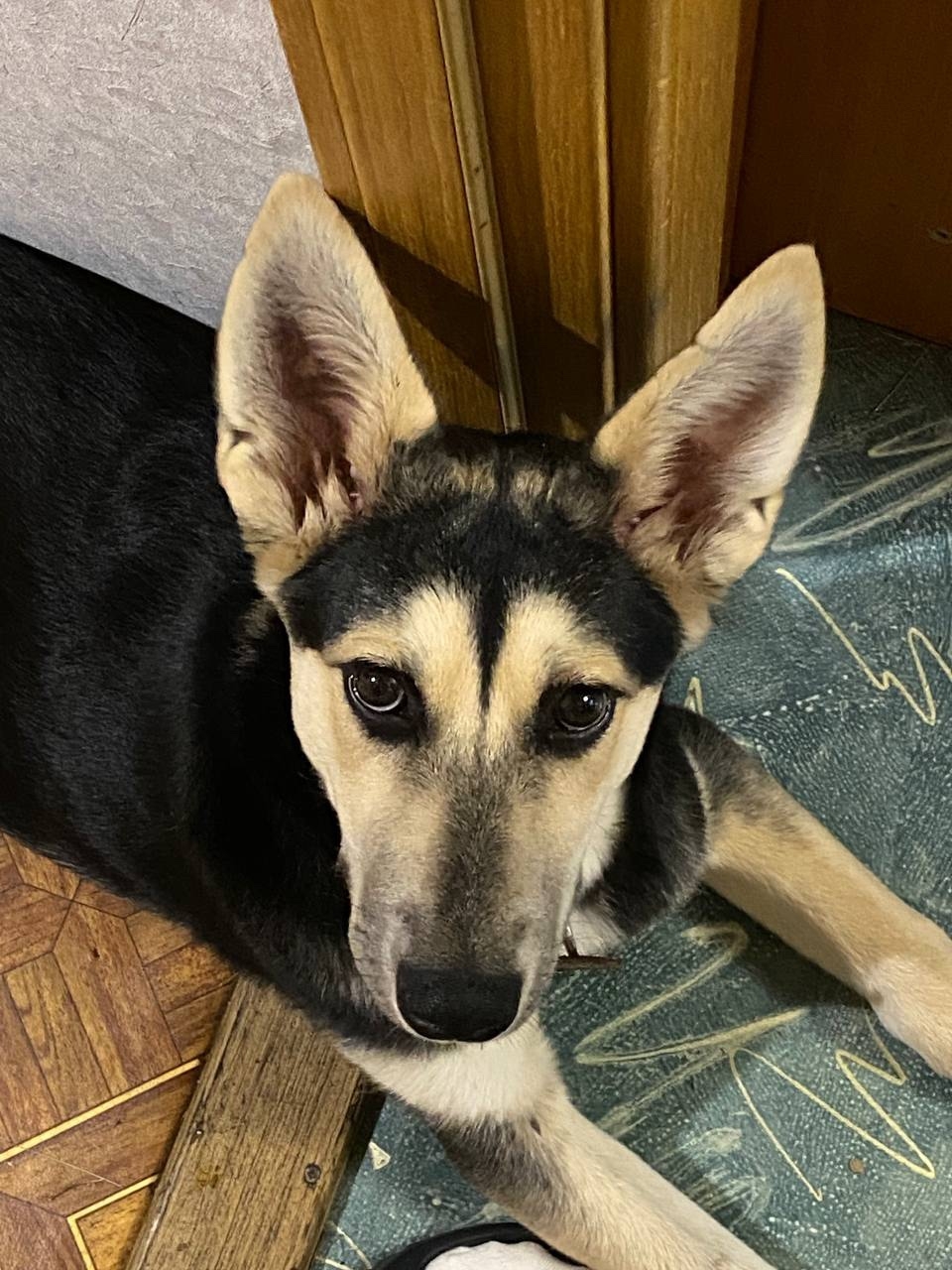 В ветеринарной клинике сказали, что это метис овчарки, 4 месяца.