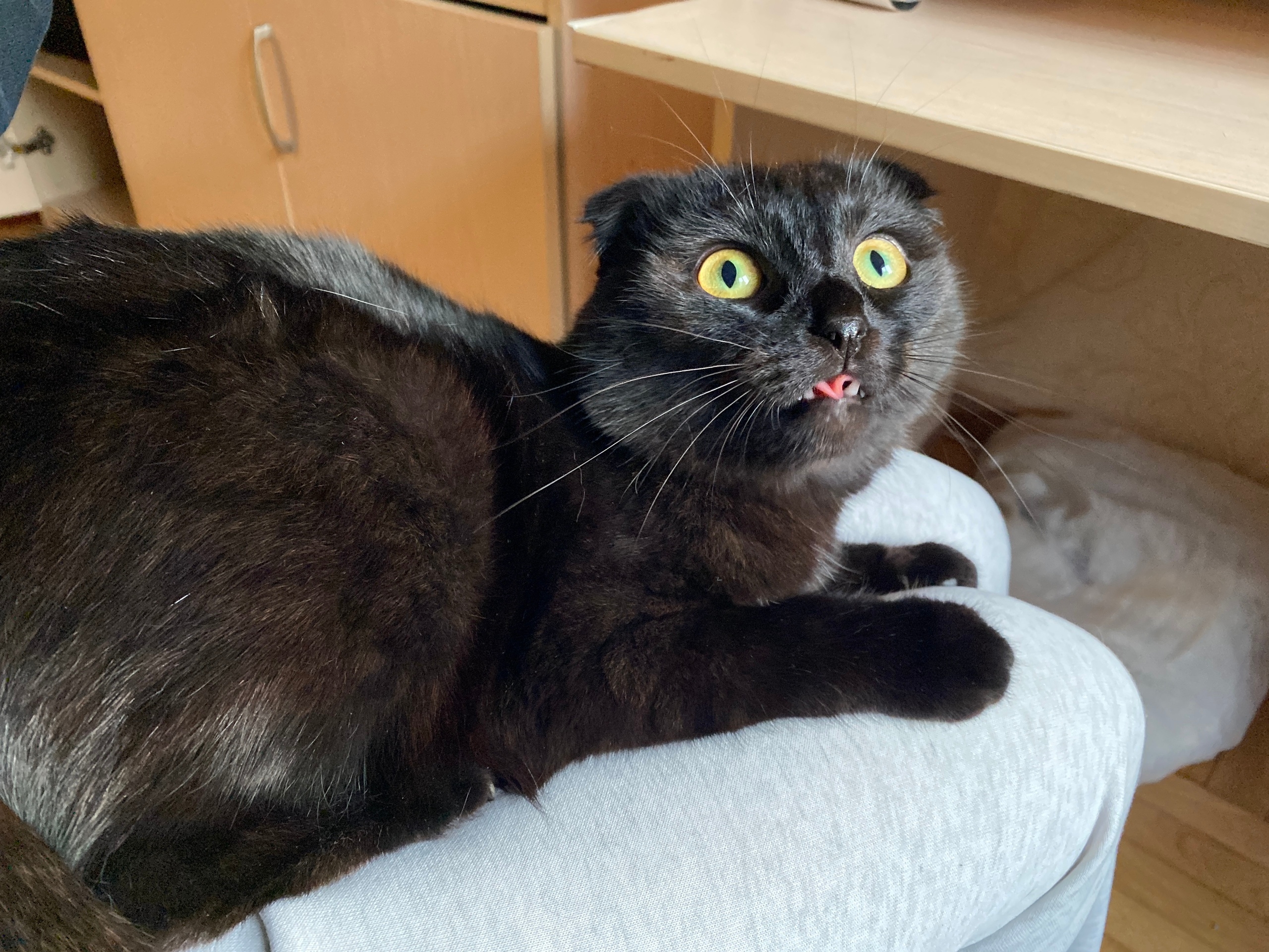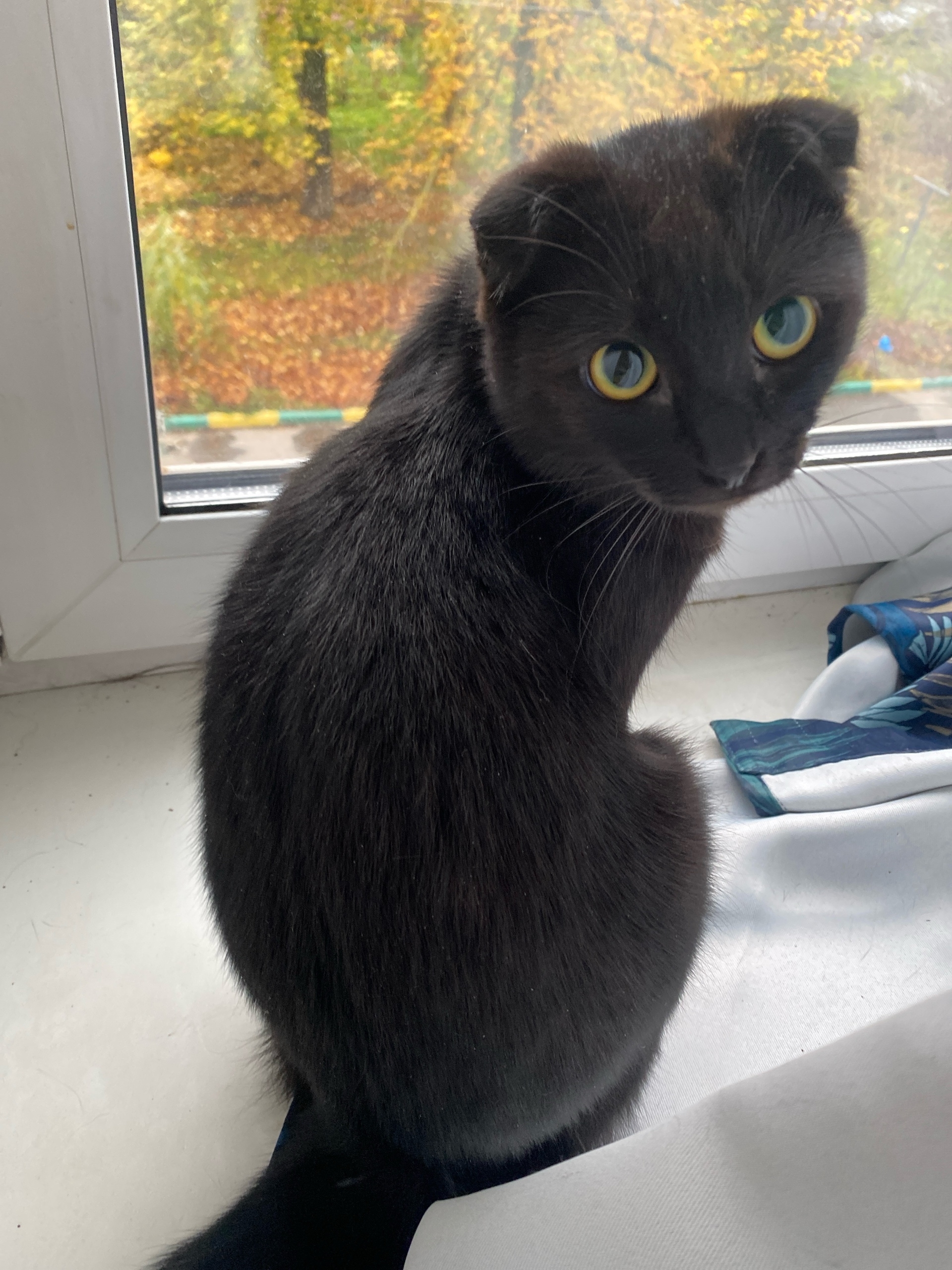 Веслоухая смешанная, 1 год 6 месяцев, окрас черный, на груди еле заметно белое пятнышко(совсем почти не видно), глаза большие, желтого цвета.