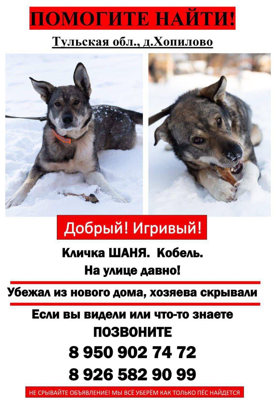 ‼️УБЕЖАЛА СОБАКА Тульская область, д.Хопилово Кличка..