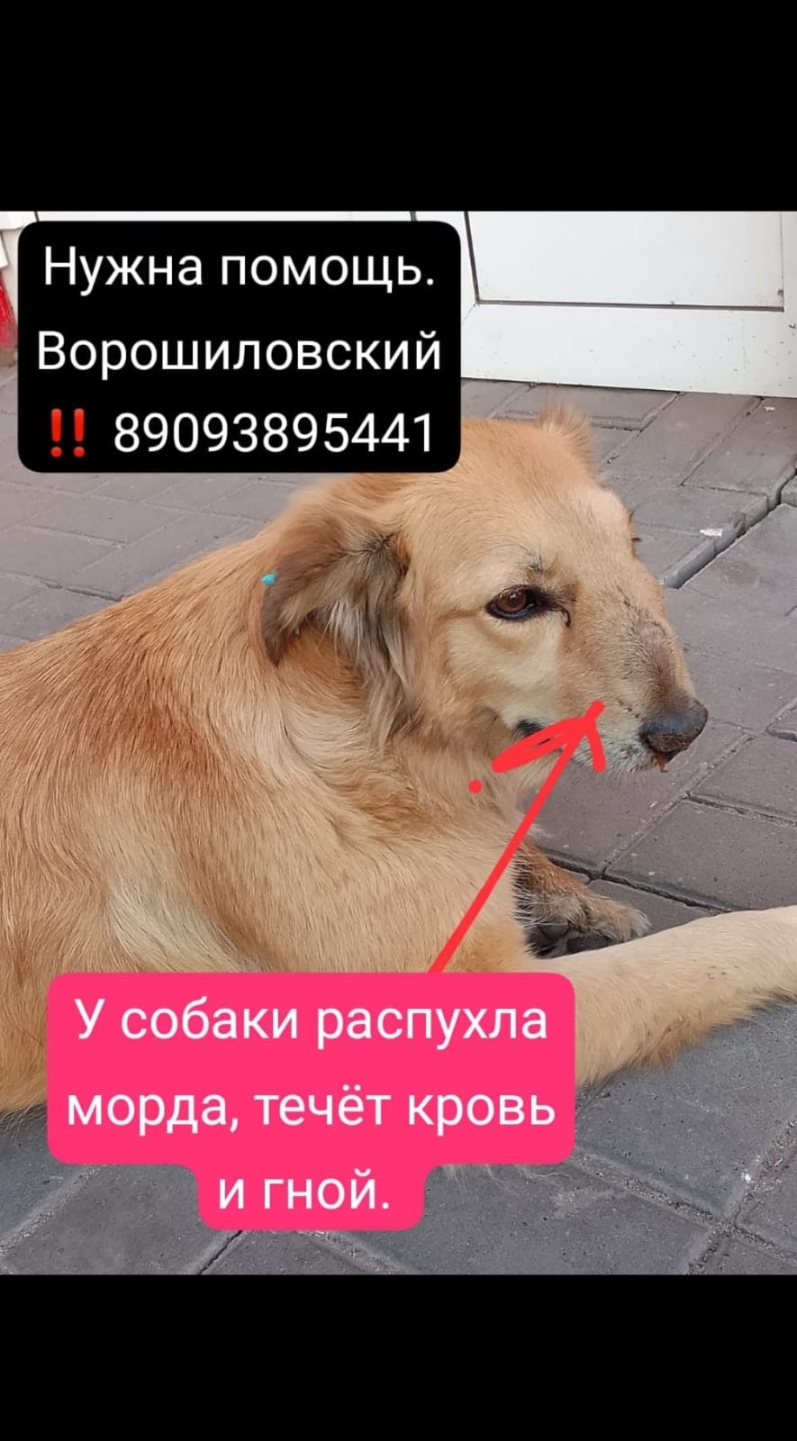 ‼️Волгоград. У собаки распухла морда, течёт с носа гной и кровь. Не может есть. Ворошиловский район , новая собака, чистая, бирка. ,