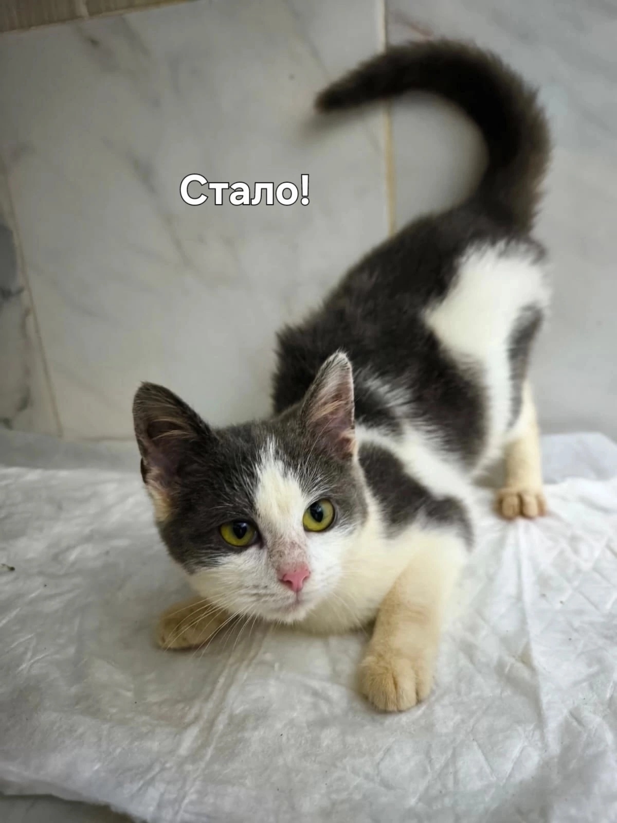 Из-за голодного прошлого её иммунитет очень слаб, кошечка отстает в развитии , почти не растет и выглядит как котенок, лечение идет медленно. Более сильные лекарства или увеличение дозы её ЖКТ не переносит😭😭😭 Помимо лечения в клинике, ей требуется дорогой лечебный гастро-корм, без которого лечение продолжать просто невозможно. У малышки начинается диарея.