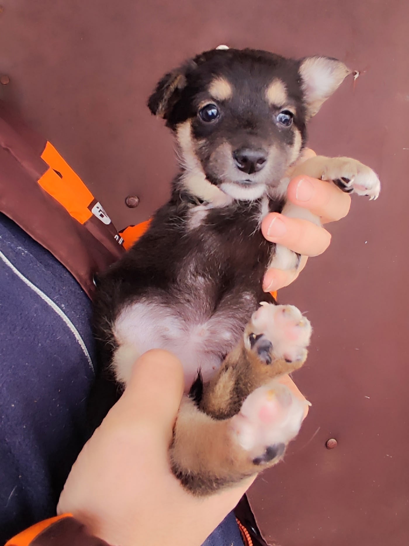 🐶Последняя девочка ,вес которой всего 1 кг,нежная кроха с ладошку, родилась с дефектом, у неё нет передней лапки😒 но ей это не мешает активно бегать и драться за еду, не отстаёт от остальных. Смелая и умная девочка.