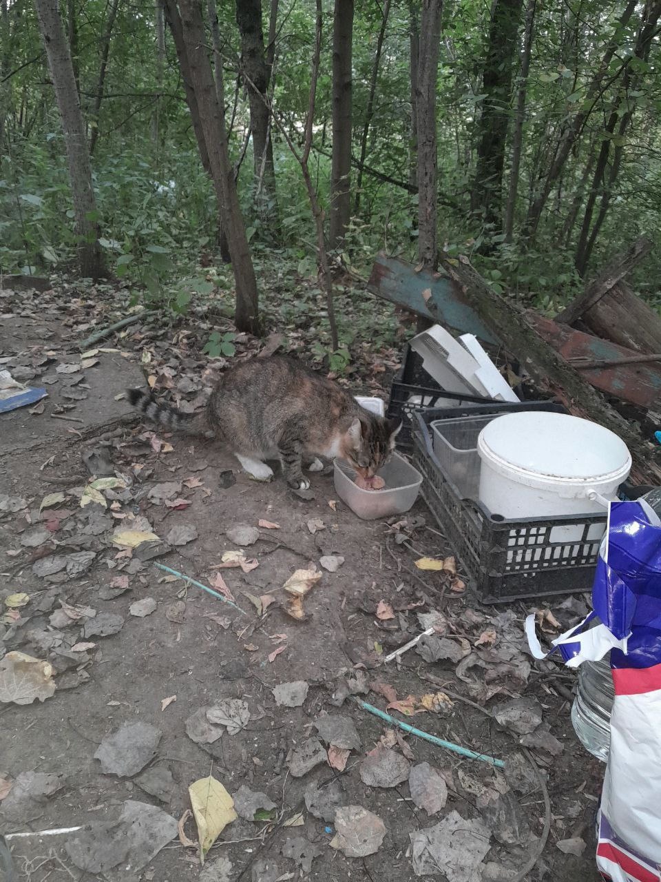Живёт в заброшке, где так-же живут собачки ,поэтому боимся за неё.Трехцветная