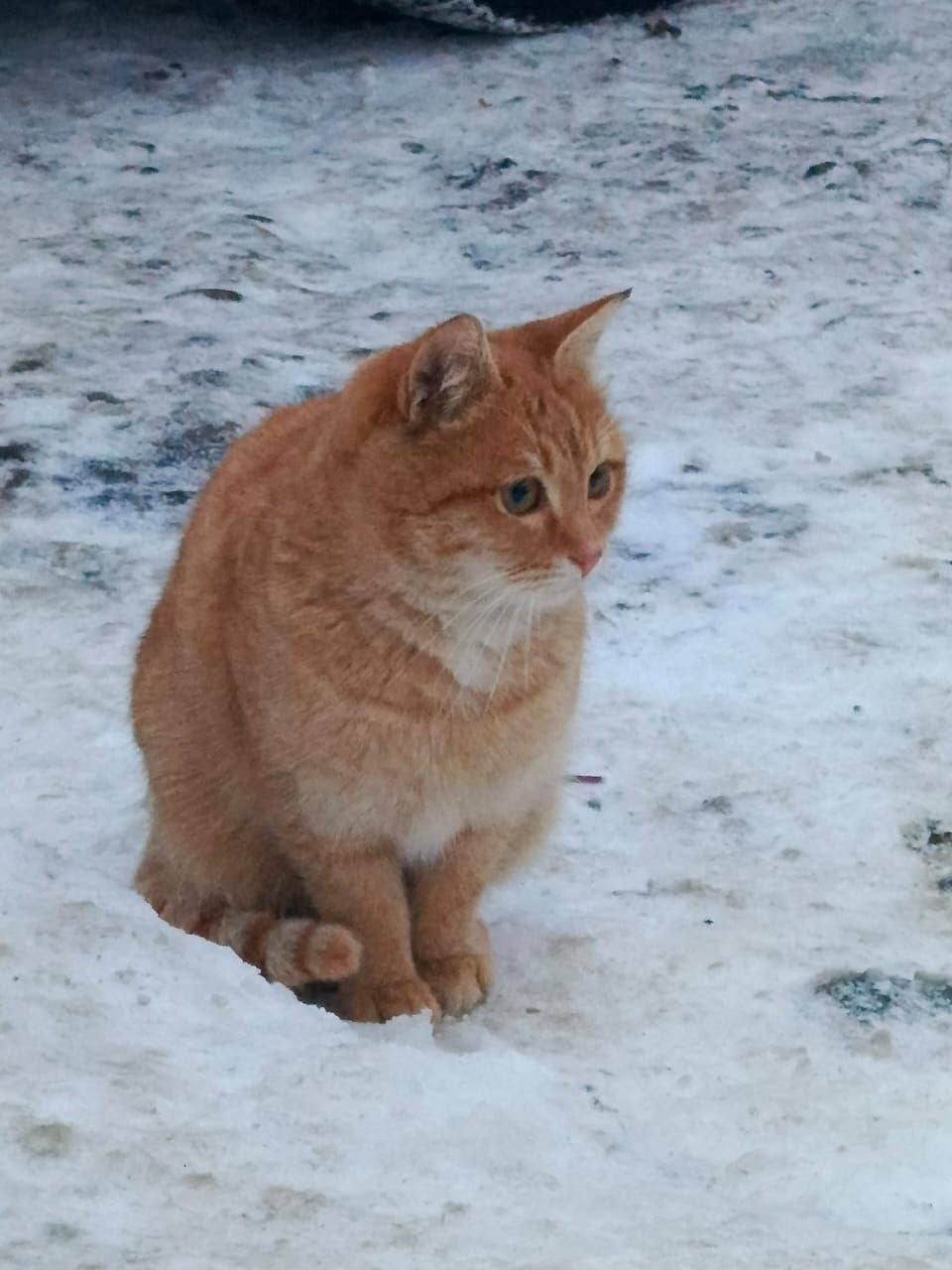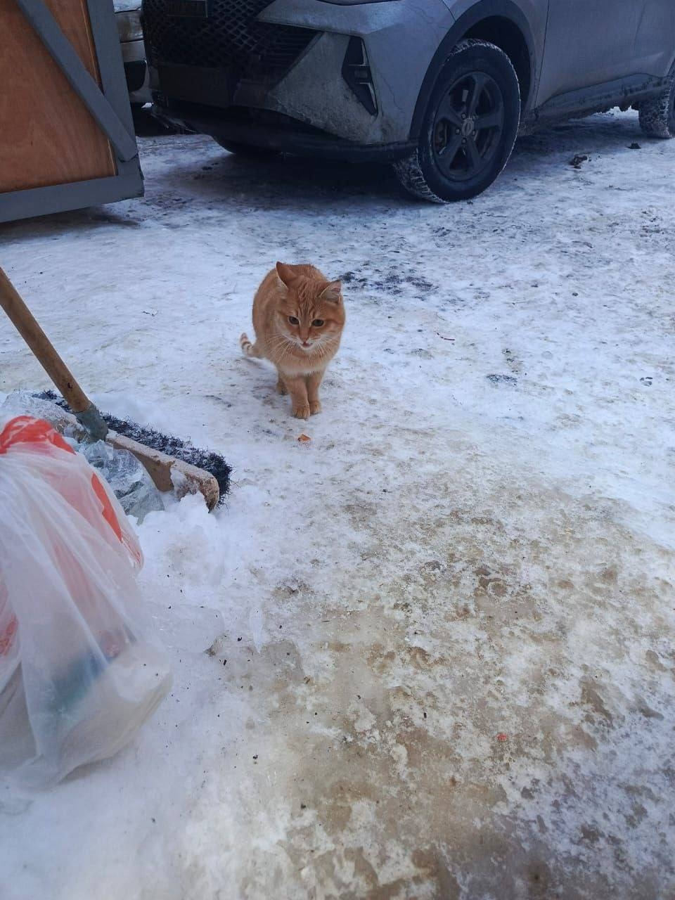 🆘 на стройке появился вот такой рыжий котик, очень голодный, ест даже хлеб, слегка напуган, пол неизвестен.