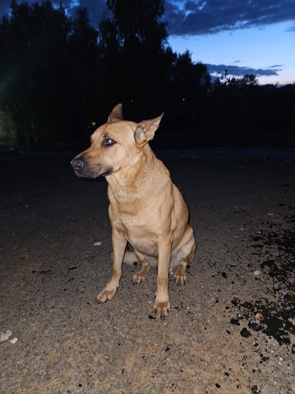 Пёс растерян, сидел на дороге на проезжей части, сам запрыгнул в багажник, отвезли с дороги на парковку на безопасное место. Сидит, не двигается, будто не понимает куда ему идти