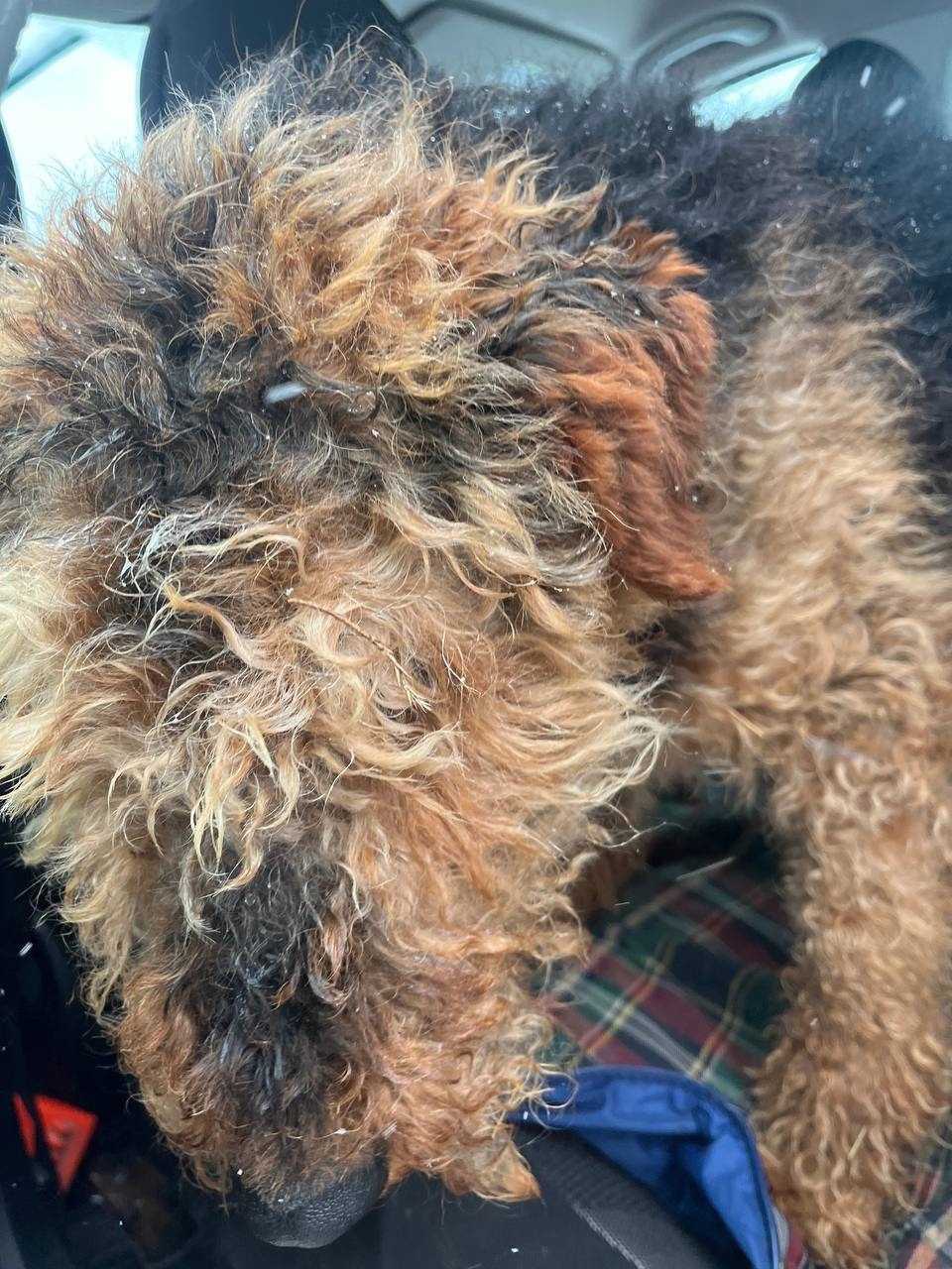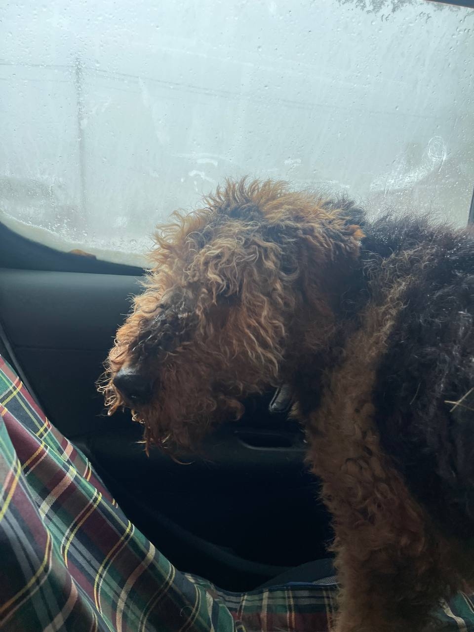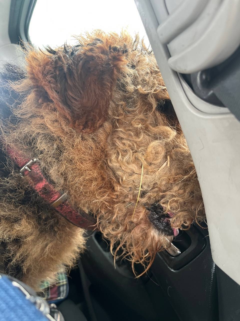 Найден эрдельтерьер кобель, черно-коричневый, с ошейником без адресника. Изможденный и очень худой, видимо не первый день бегает. Очень спокойный, задние лапки трясутся постоянно.