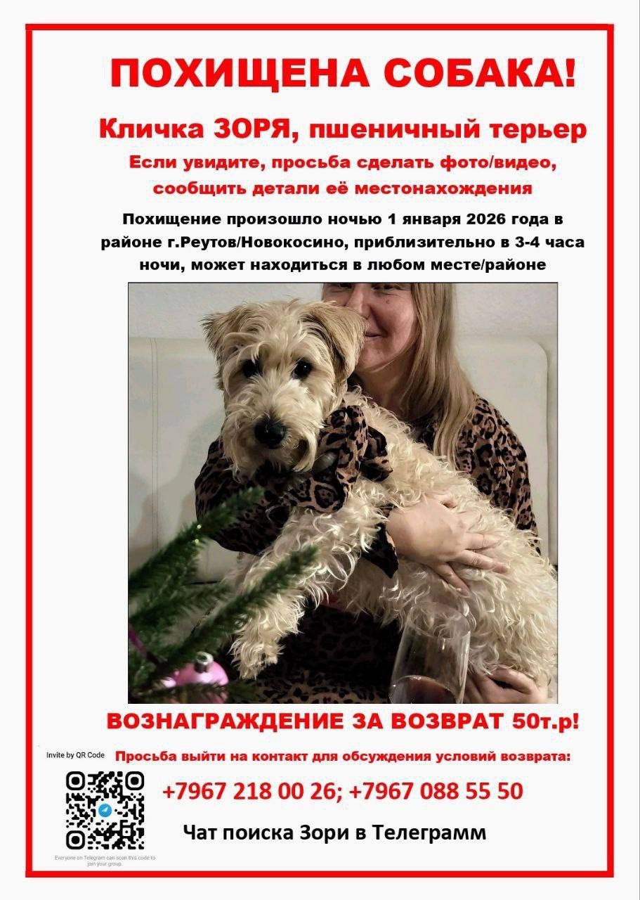 ⚠️ Поиск пшеничного терьера Зори 🥁 Пропала 1 января 2026 Поиск..