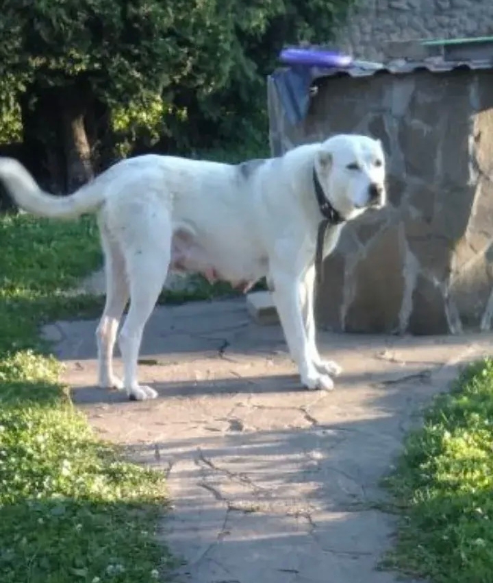 Была в ошейнике. Не агрессивная, но участок охраняла. Жила с таксой. Как ведёт себя за участком, никто не знает. Если кто заметит, сразу звоните хозяину.