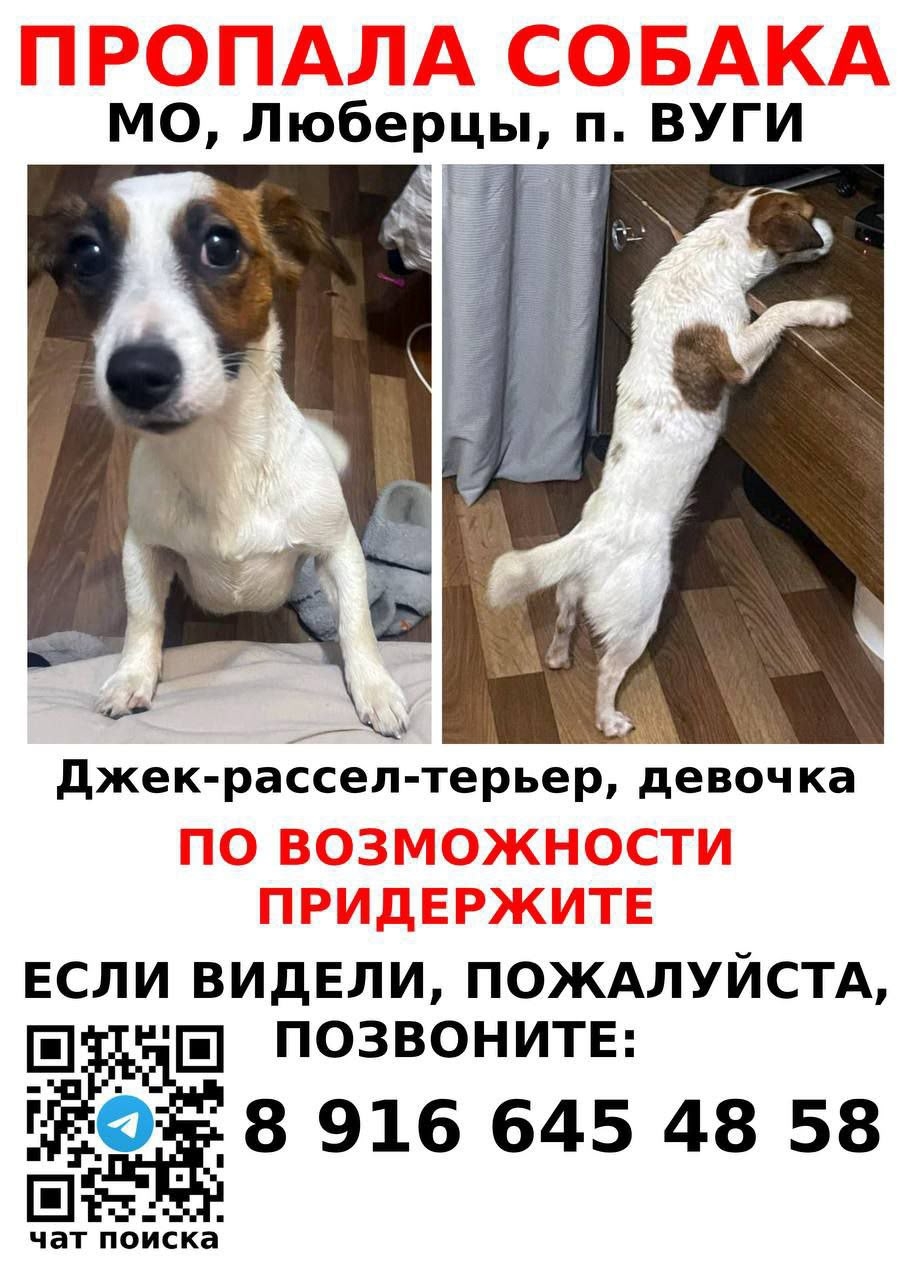 ⚠️ ПРОПАЛА СОБАКА ДЖЕК РАССЕЛ Кличка Джемма. 19.10.2025 МО ЛЮБЕРЦЫ..