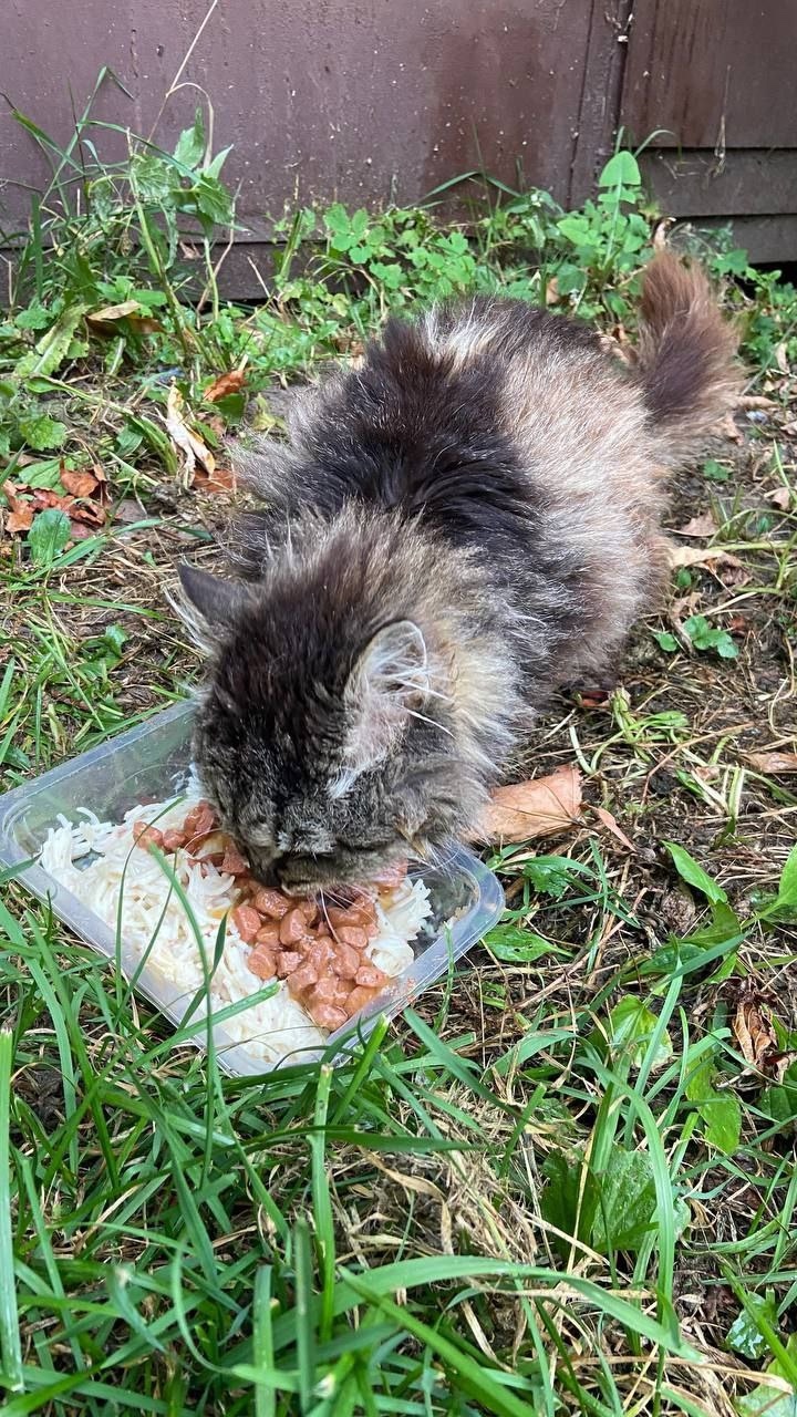 Кошечка найдена бабушкой, которая кормит кошек у себя во дворе. Киса ласковая, голодная, глаза и зубы чистые. Но зимой она не выживет без нормальной шубки, колтуны нужно сбривать под ноль, там мочалка. 😩