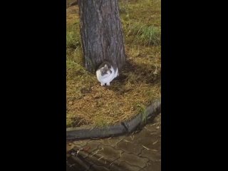 Сегодня увидели кота, белый с серым. Хвост короткий.