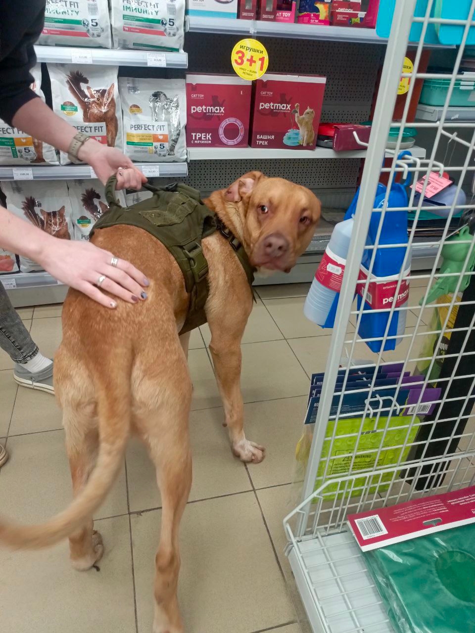 Бегает собака в шлейке по всему городу по дорогам. Сегодня забежал в магазин 4 лапы.