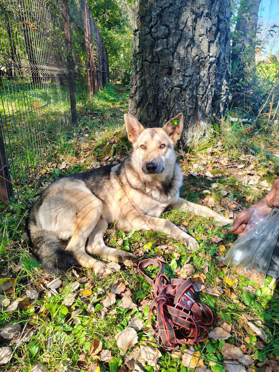 Хотим попробовать приучить к вольеру и дому. Удалось выяснить, что в понедельник, 22 сентября, в 8.45 он был в Савельево, а в 10.30 – уже на Курсаковской, где пробыл где-то до 15.00, далее неизвестно, мог уехать на электричке или пойти вдоль путей. Сам он из Истры с улицы Советской.