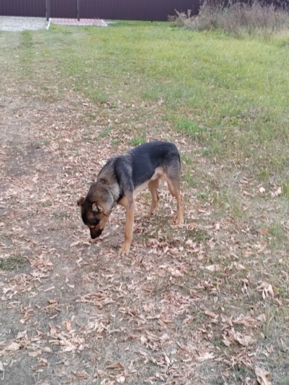 Здравствуйте. Вот такой худой пес в ошейнике. Есть чип в ухе – скорее всего выпущен после отлова. Может кто ищет?