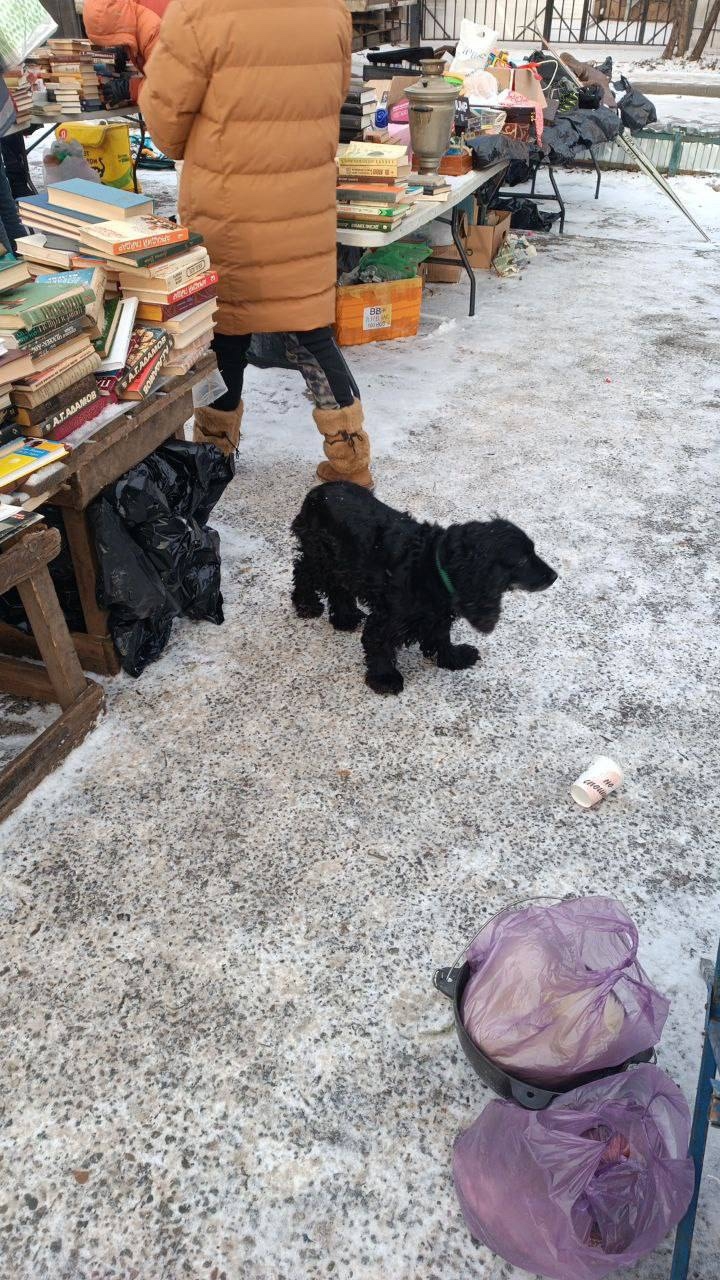Уже несколько дней в разных районах бегает черный спаниель, голубой ошейник на шее, пол неизвестен