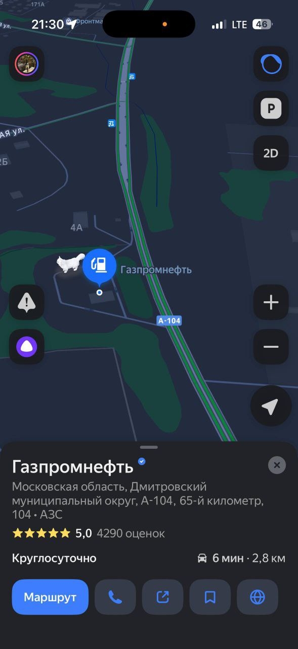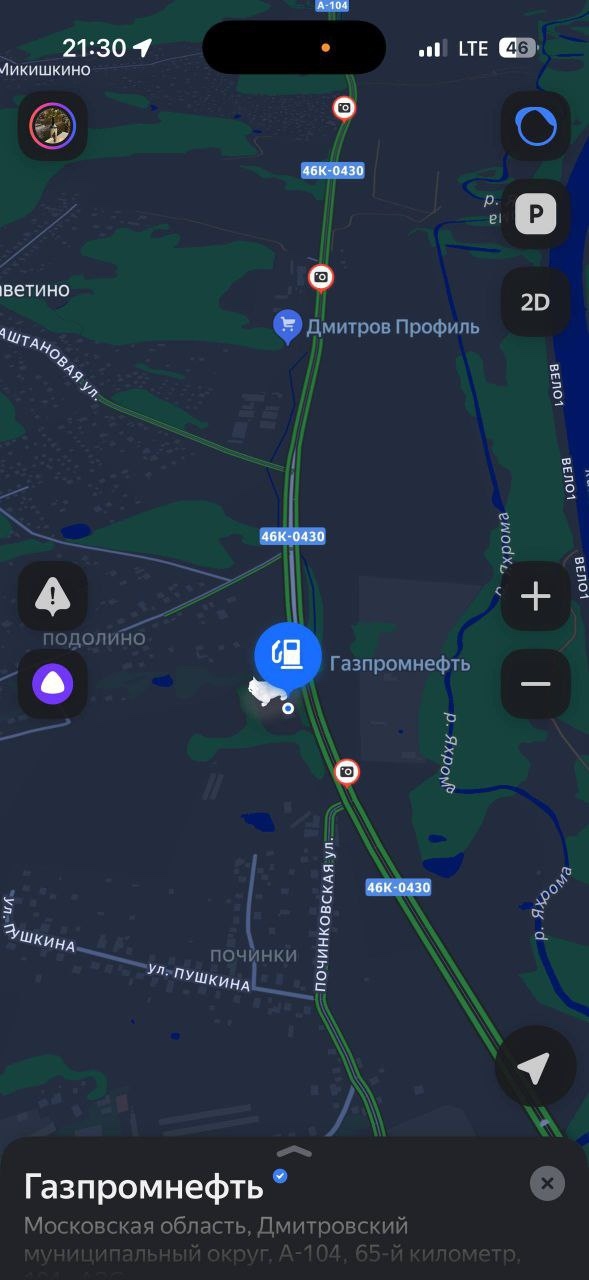📍 МО, Дмитровский округ, А-104, 65 км, 104 АЗС Газпромнефть