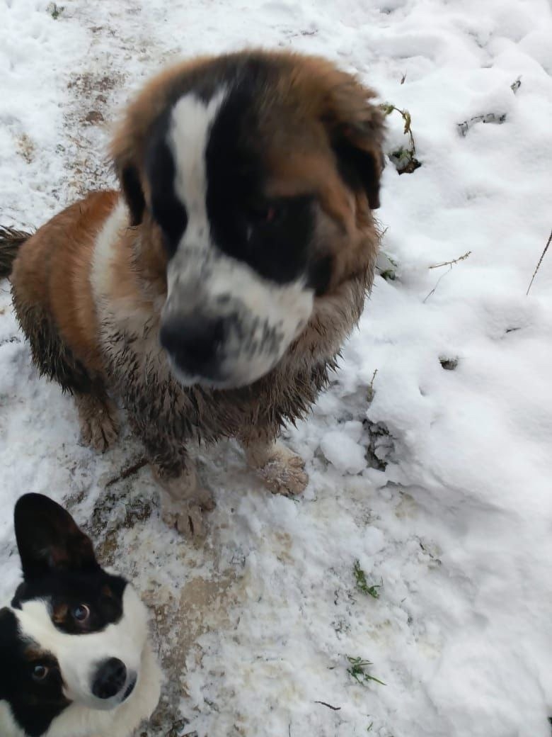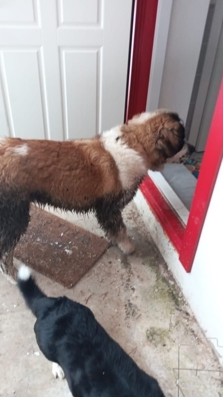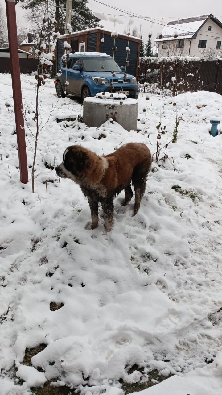 Найдена собака. Похожа на сенбернара, девочка, в ошейнике.