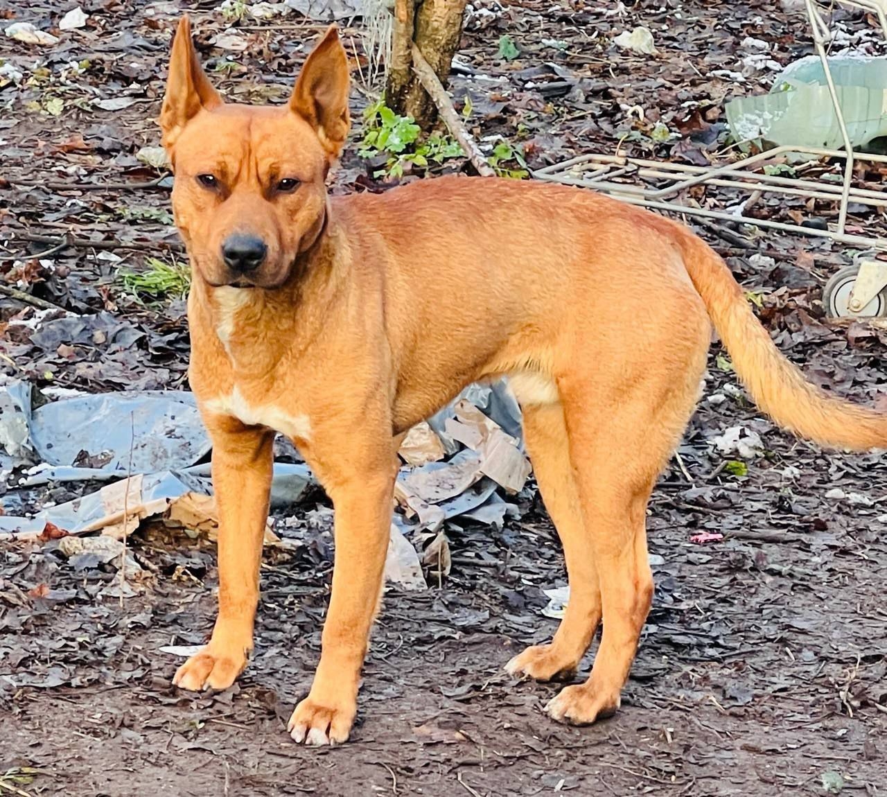 Бегает собака, окрас рыжий. Питбуль? Или близкий метис. Кобель, молодой, года 1,5 без амуниции. В Августе уже находили его, приблизительно в том же месте. Не предержан. Ищем хозяина.