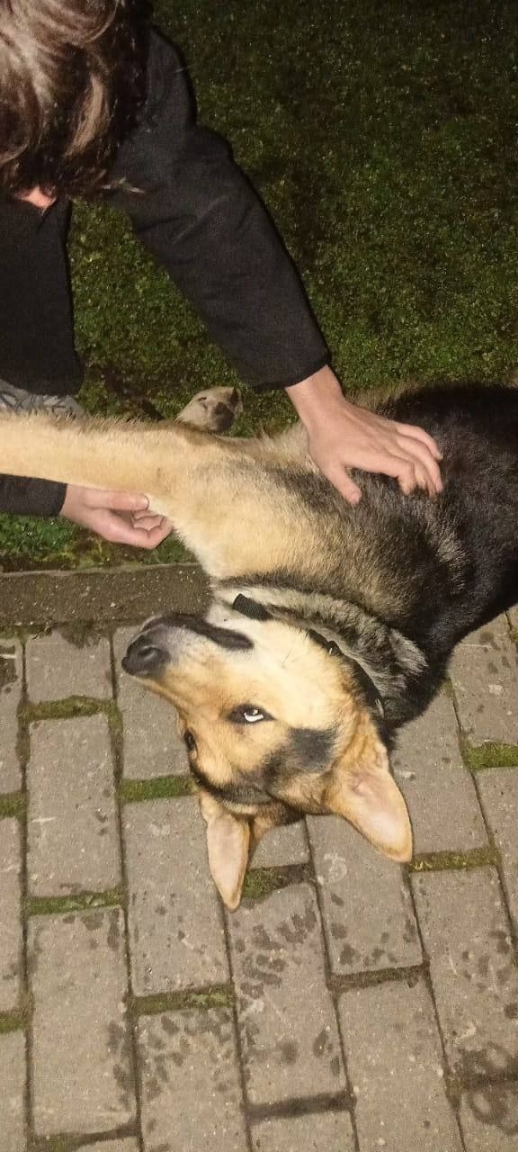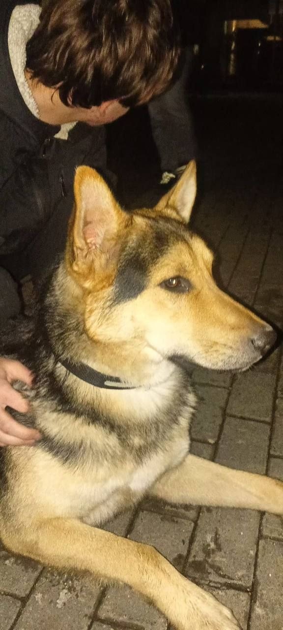 Кобель, ласковый, дружелюбный. В ошейнике, адресника нет. Местные жители говорят, что видят его не первый день.