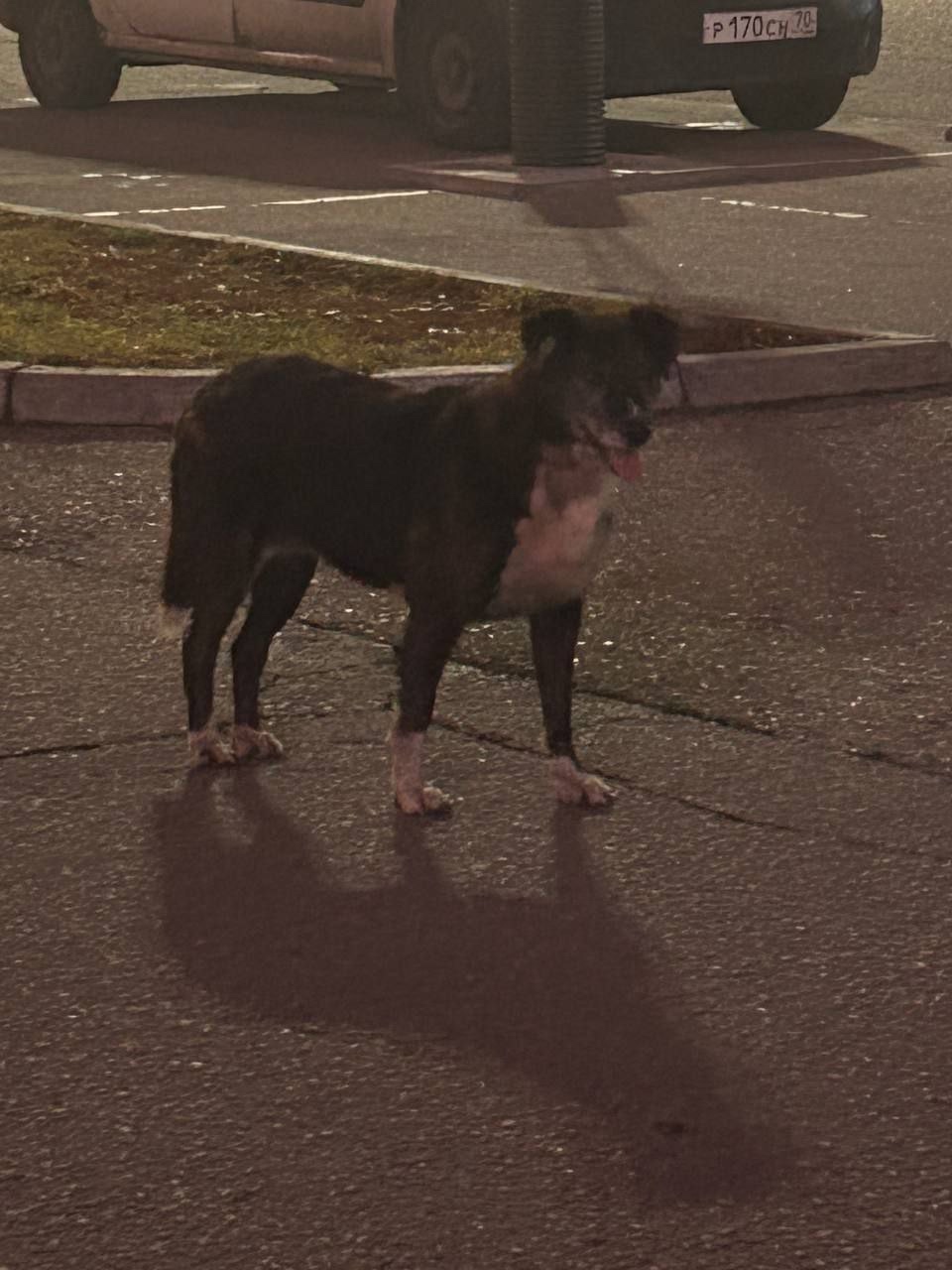Доброе утро. СВАО, Мытищи. В 5:45 утра на территории Ашана-Мытищи нами была замечена собака. Темного, смешанного окраса, белая грудь, белые носочки лап, белый кончик хвоста, на переносице белая полоска. Увидев нашу машину, она побежала за нами. Не дается, поведение потеряшки. От предложенного корма отказалась. Двинулась в сторону Нагорного.