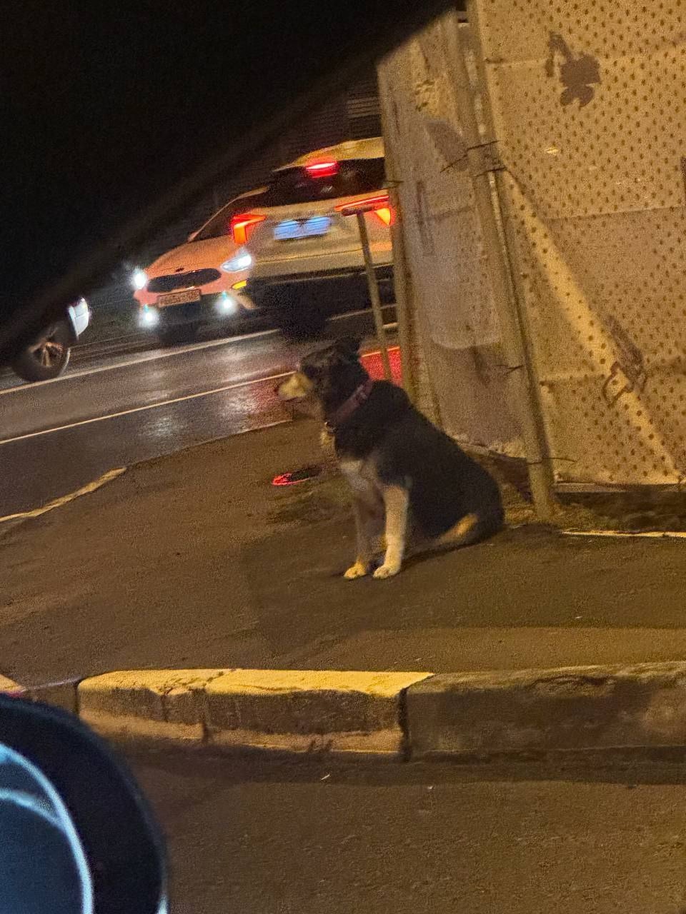 Обнаружена собака. Похожа на овчарку или дворняжку. Крупная. С ошейниками. Пугливая.