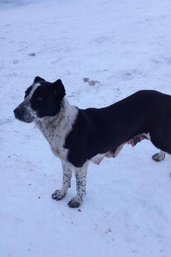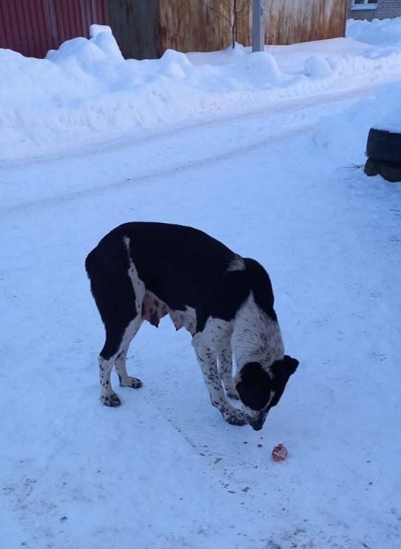 Уже неделю в Сергиевом Посаде бегает собака, девочка. Кормящая, но щенков рядом не обнаружили. Человек подкармливает,взять к себе не может. Ищем старых или новых хозяев.