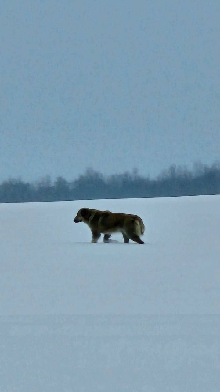 Чеховский р-н.Около д.Пешково.В поле идет. Большая мохнатая палево-рыжая собака. Очевидец Галина 89296273214