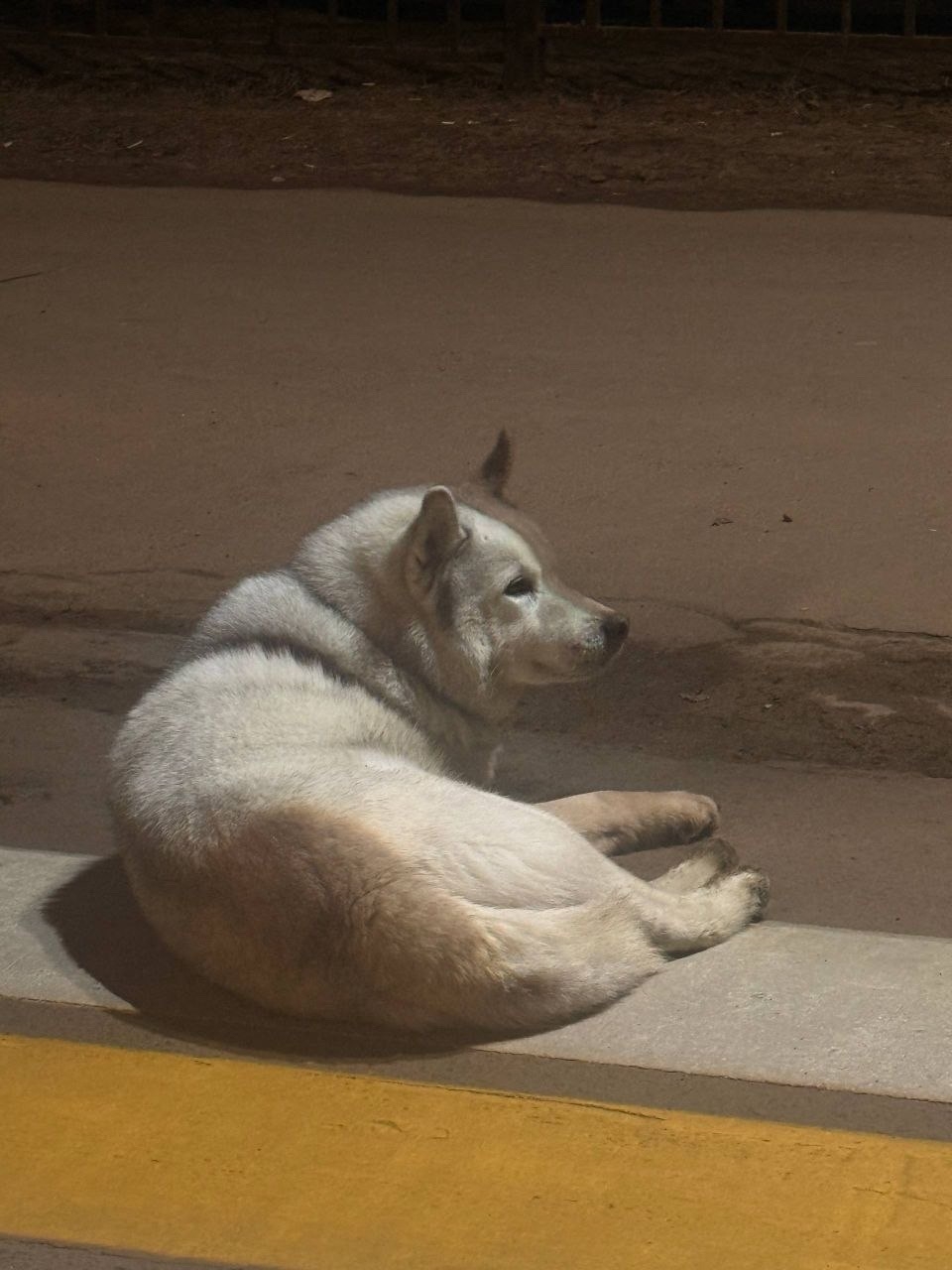 Похож на хаски, с ошейником + привязывался к людям. Видно, что ищет хозяина.