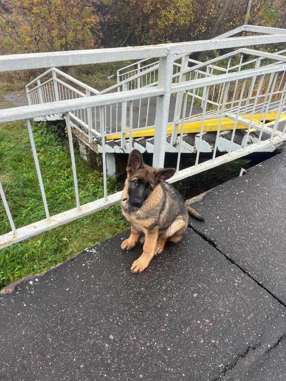 Сегодня утром в 10:30 был замечен щенок немецкой или восточно-европейской овчарки