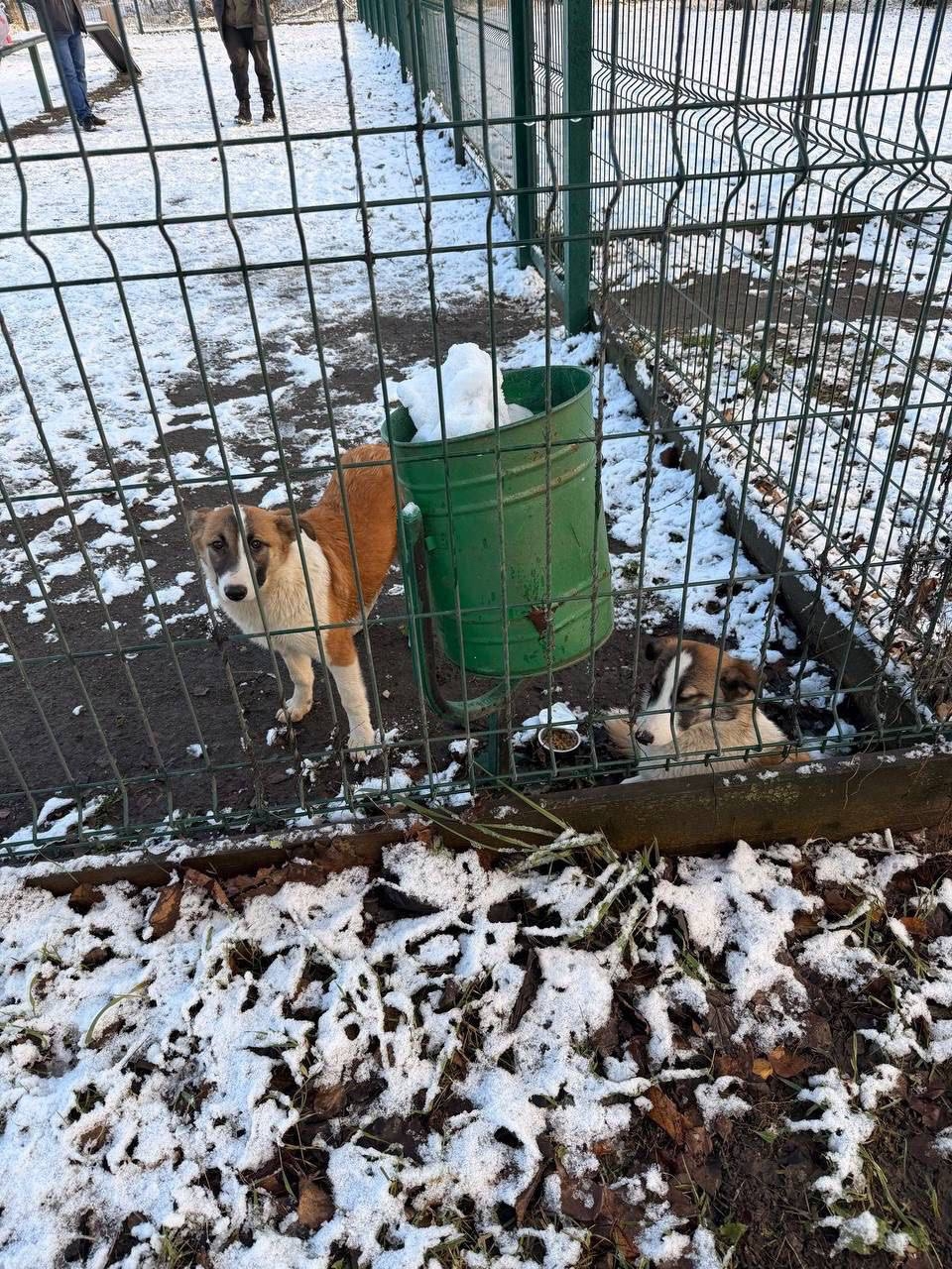 в выгульник для собак СЕЙЧАС привели и оставили двух маленьких собачек.