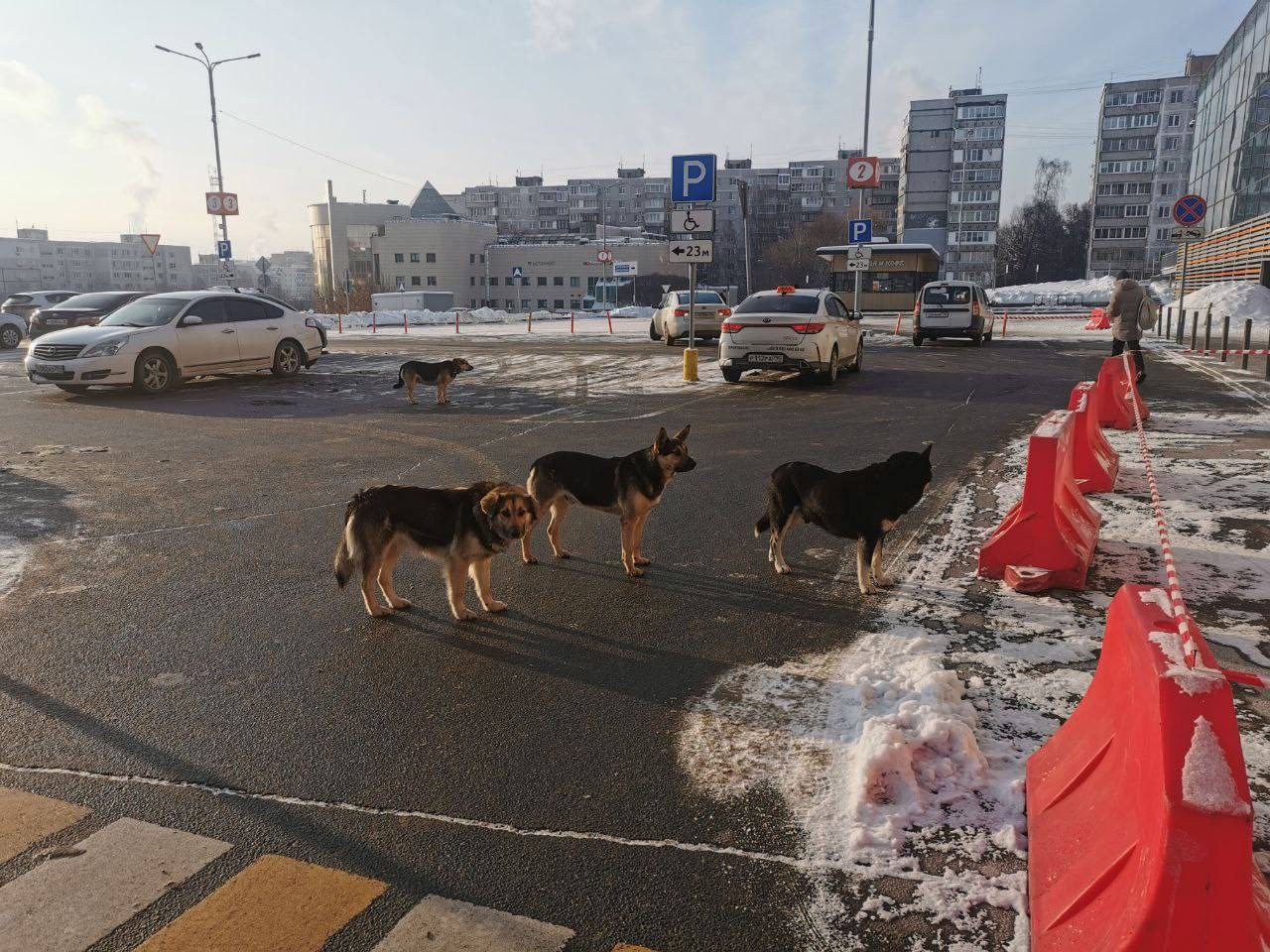Около магазина Глобус замечены 4 собаки. Пугливые. Вдруг кто-то ищет.