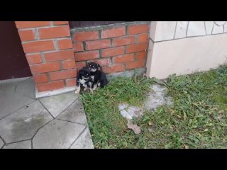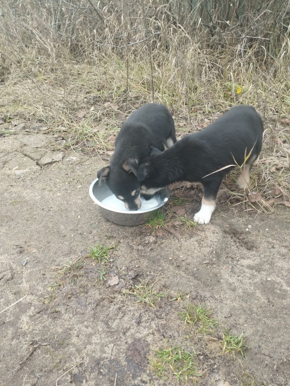 Один идёт к человеку, другой боится. Накормили. Соседи принесли сено, они прижались друг к другу, сейчас спят. Говорят, что большие не вырастут, можно и в квартиру. В деревне у всех собаки и не по одной, никто из соседей не берёт. Возьмите себе друга 🙏