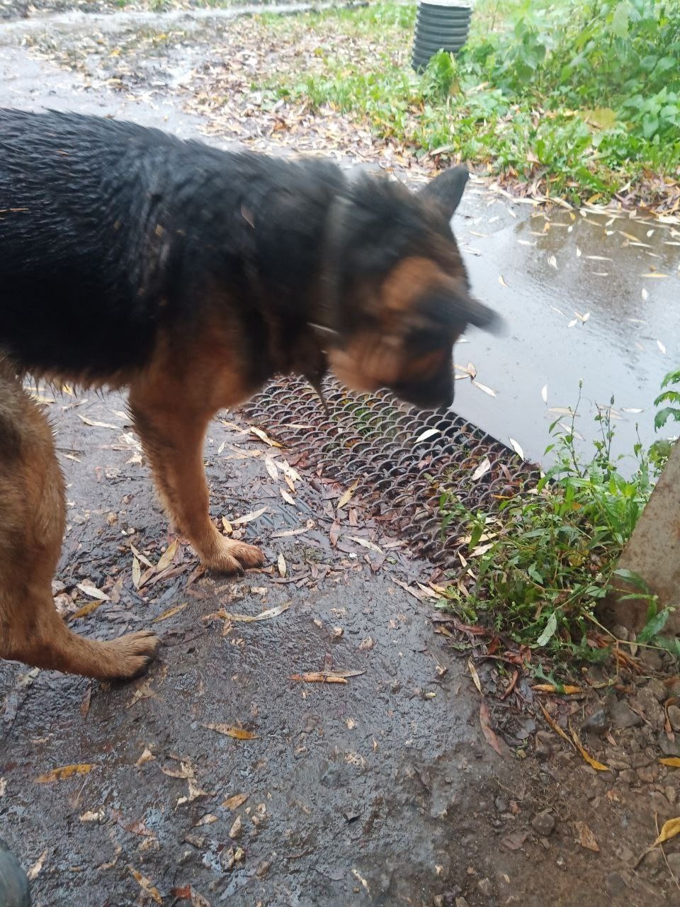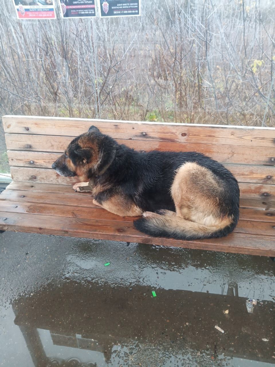 Овчарка немец добрый, уже на элеваторе на Московской голодный даже черный хлеб глотком ел, покормили наровит зайти в помещение чей потеряшка.