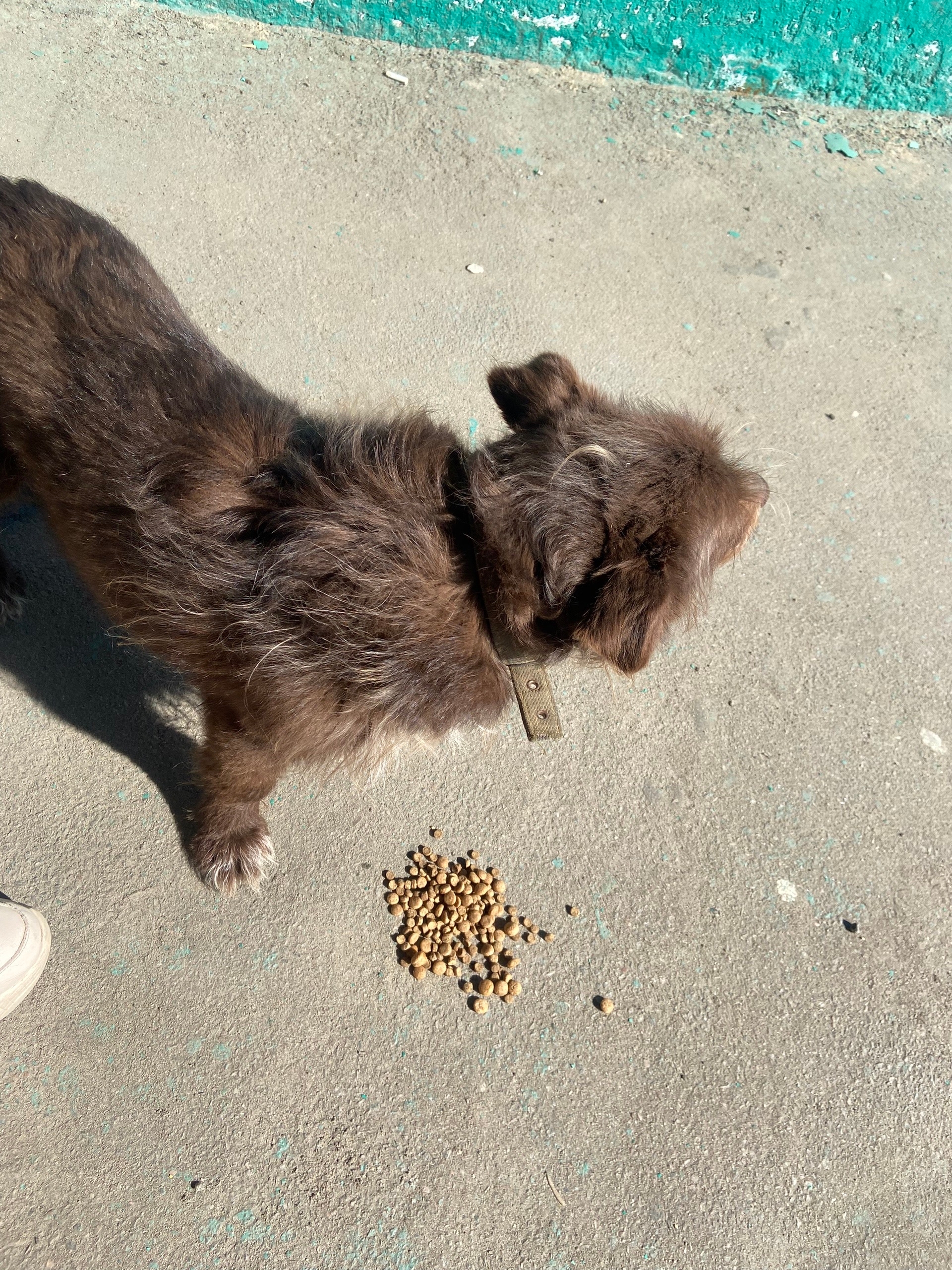 С ошейником и старого тканевого ремня вроде