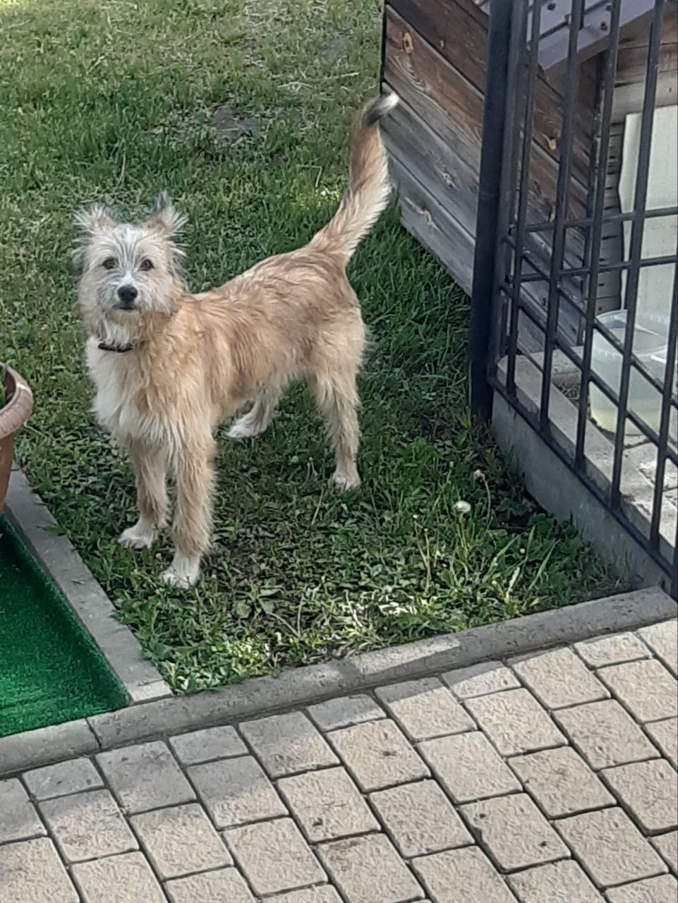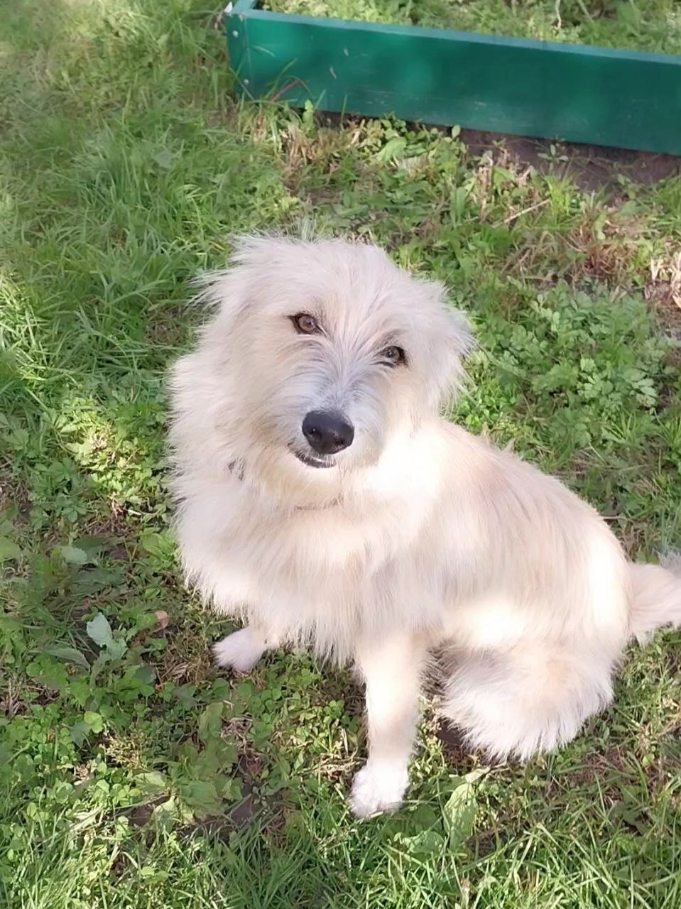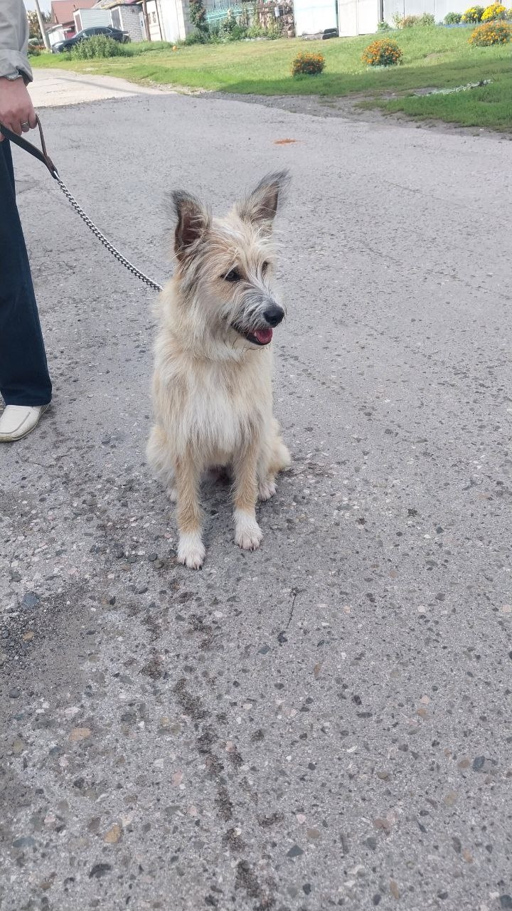 Девочка, беспородная, средних размеров. Цвет – светло-рыжий, грудь белая, на лапах “белые носочки”, кончик хвоста черный, переходящий в белую кисточку. На эмоциях уши может поджимать. На собаке был коричневый кожаный ошейник. Кличка – Ася. Собака не агрессивная.