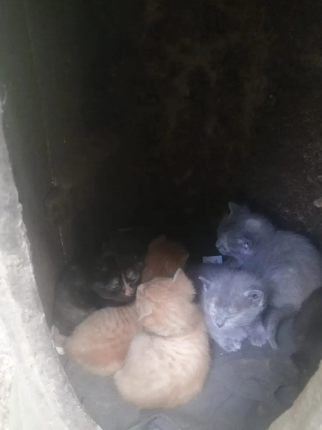Забрали с улицы, где они жили с мамой в старом металлическом столбе 😿