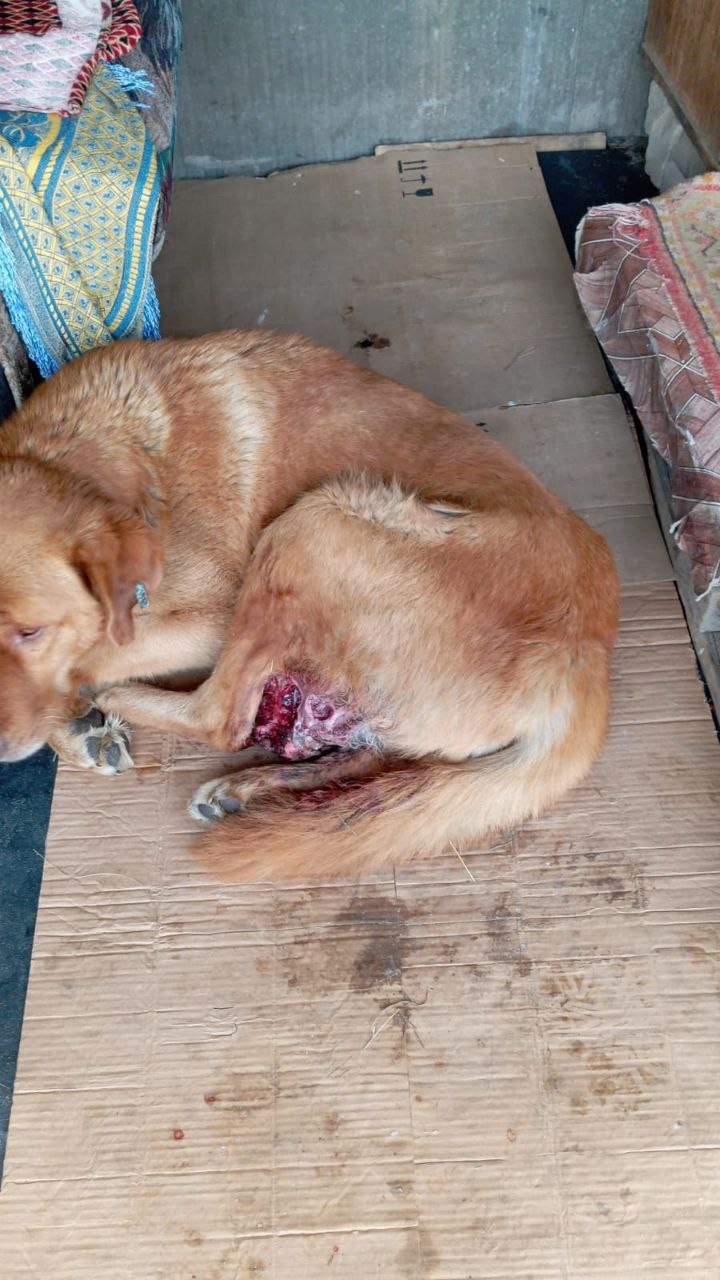 ❗ПОЖАЛУЙСТА ПОМОГИТЕ ❗Волгоград,Дзержинский р_н, на базе умирает пёс,очень добрый и ласковый. Уже рвали собаки,его оперировали,а теперь у него вот такая картина ,на фото😰! Женщина просит помощи,сама не справится