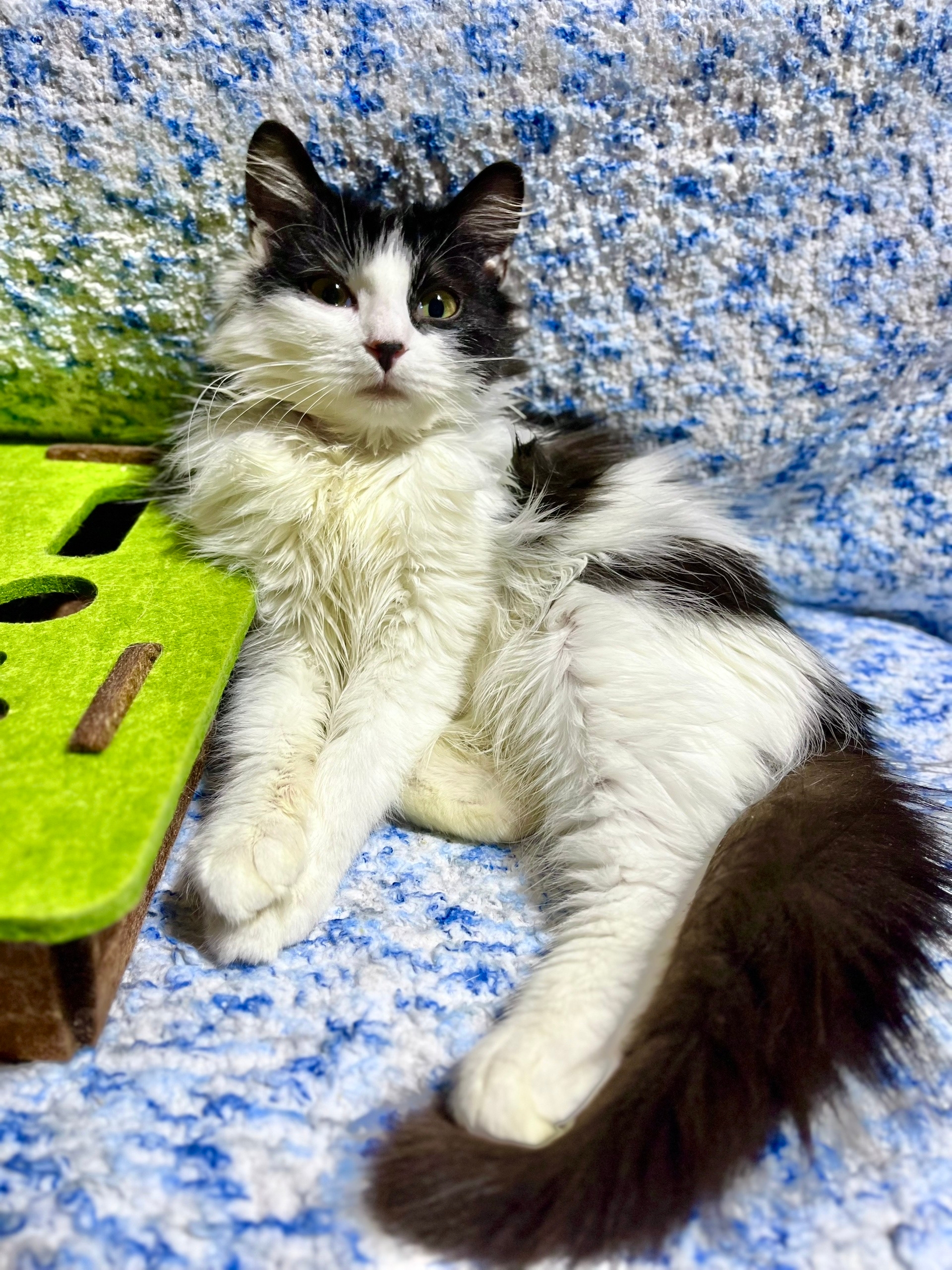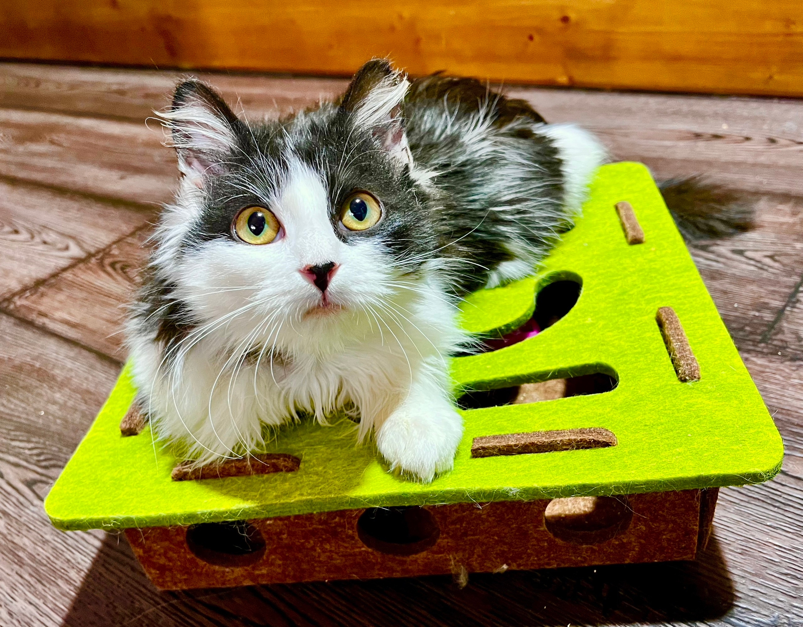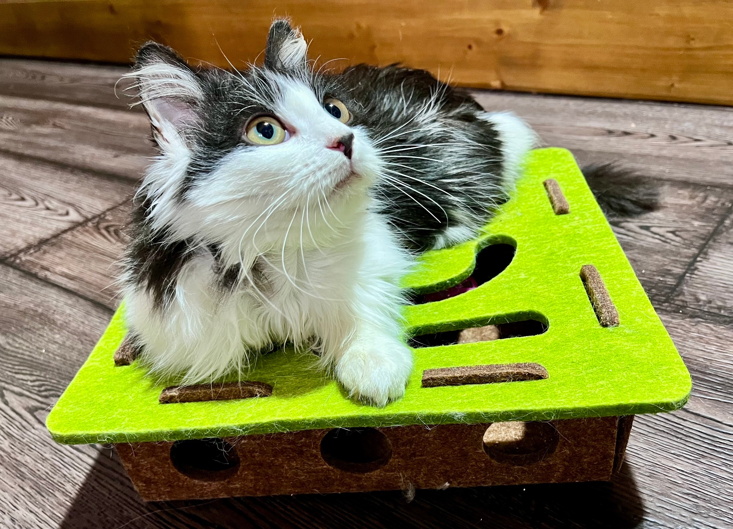 Кай обаятельный, чудесный, безумно ласковый и человекоориентированный которебенок, в возрасте 4 месяца. Стоит немного до него прикоснуться и сразу же включится мелодия мурчания надолго😸 Кай, как и все детишки, обожает играть и резвиться. До упаду футболит мячики и мышки. С огромным интересом гоняется за удочкой – дразнилкой и с большим удовольствием скачет по кошачьему комплексу😺 С этим малышом вы явно не соскучитесь, его супер энергия заставит вас погрузиться совместно с ним в мир детства😺