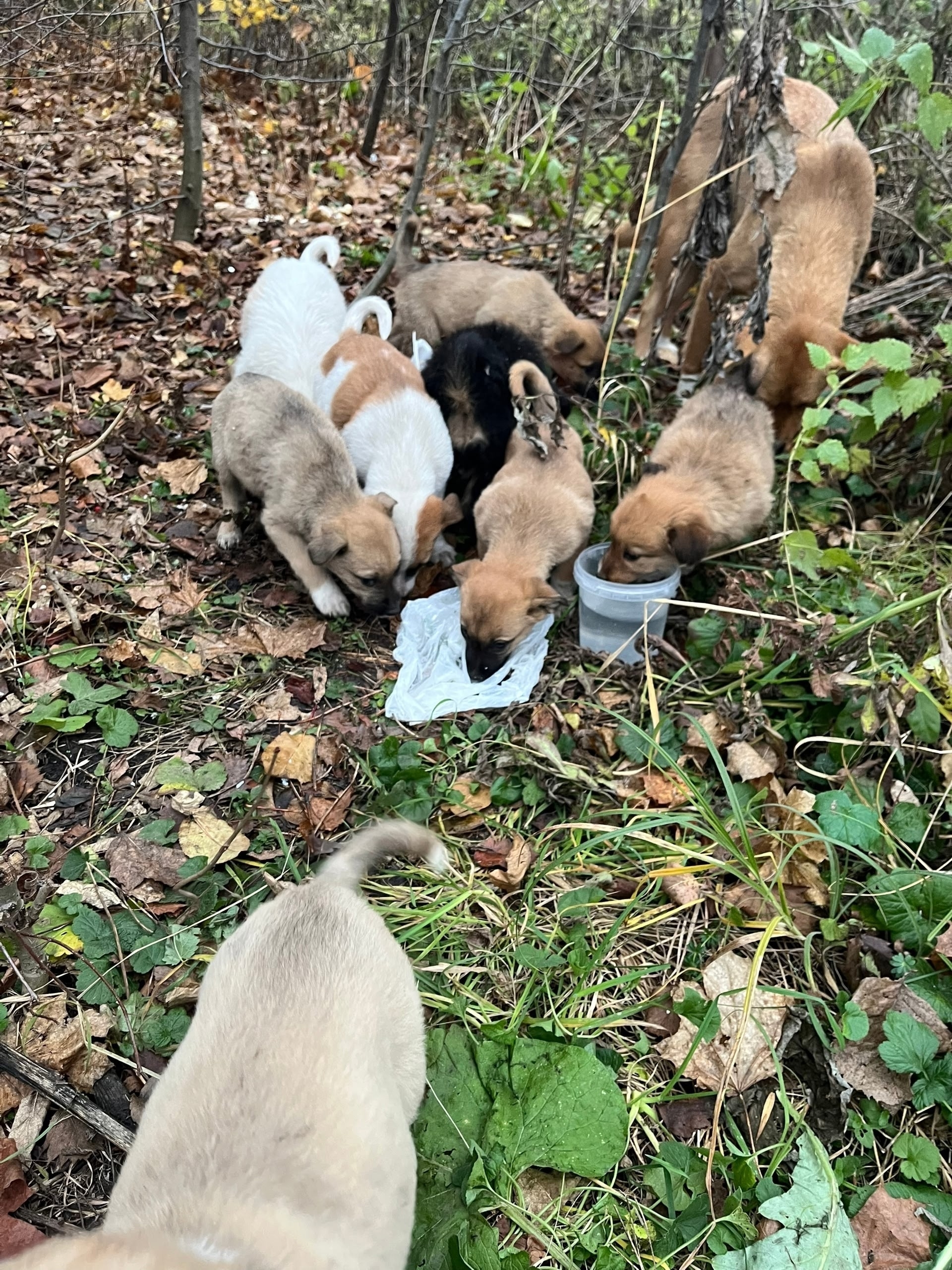 Спасите 9 маленьких щенят и худенькую маму. Они замерзают и голодают. Мы случайно их обнаружили на Вахрушева, под каменной плитой. Ходим кормить, щенки очень ласковые.