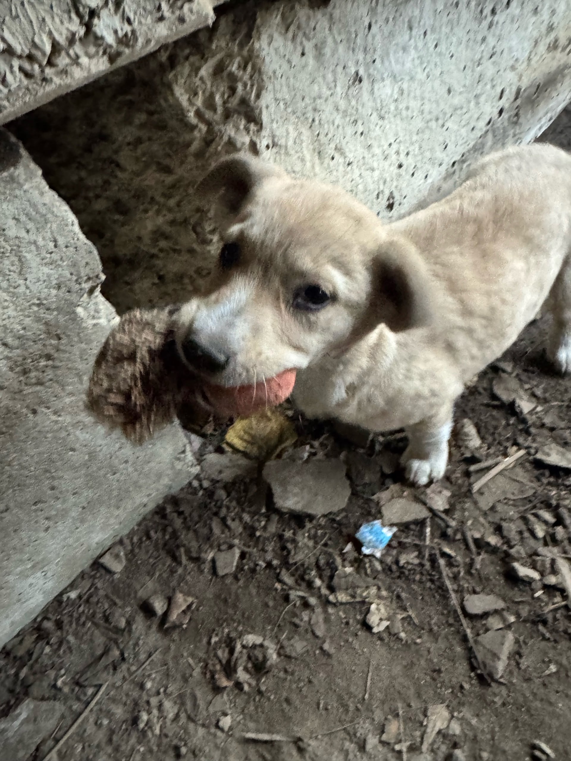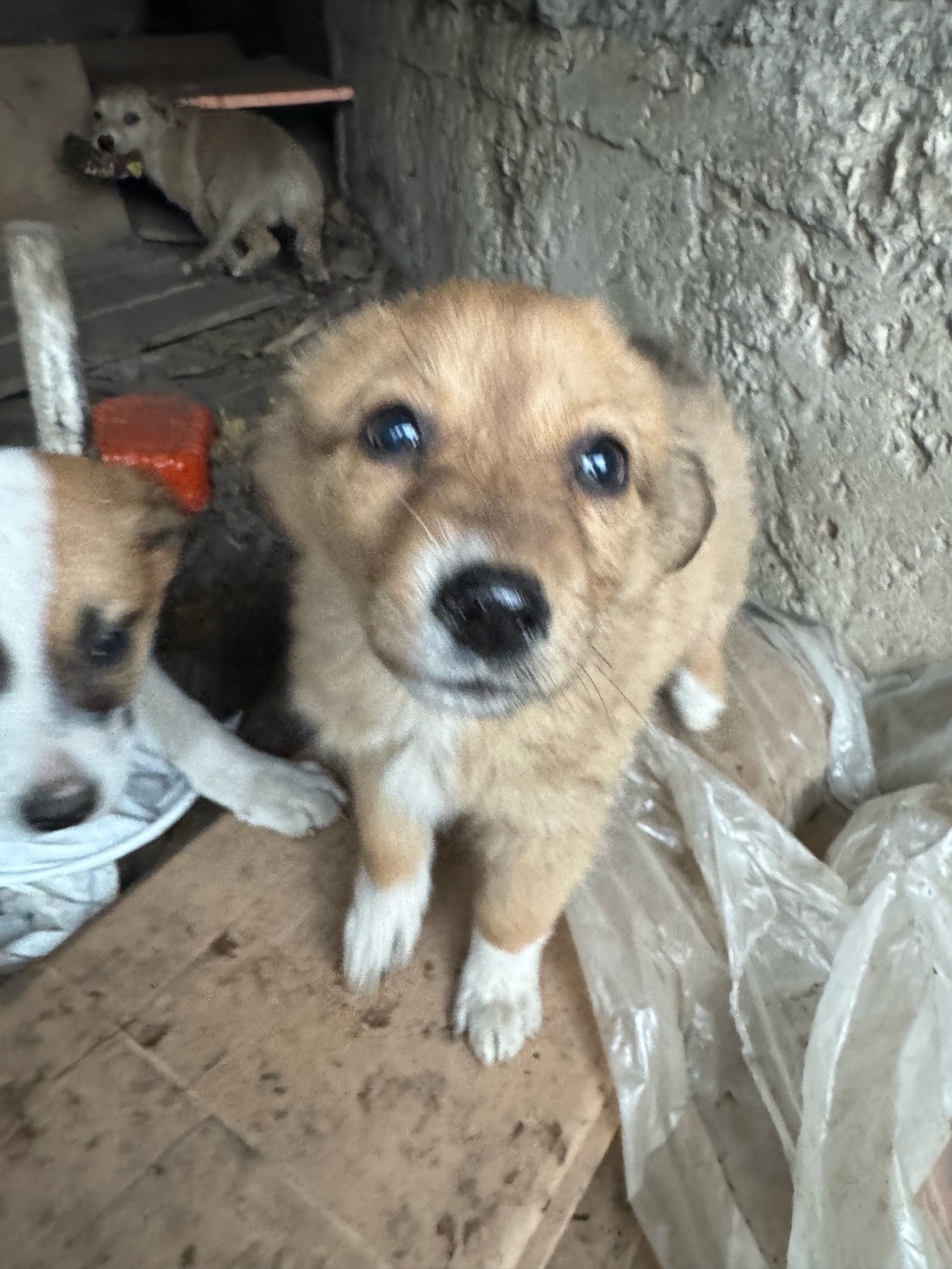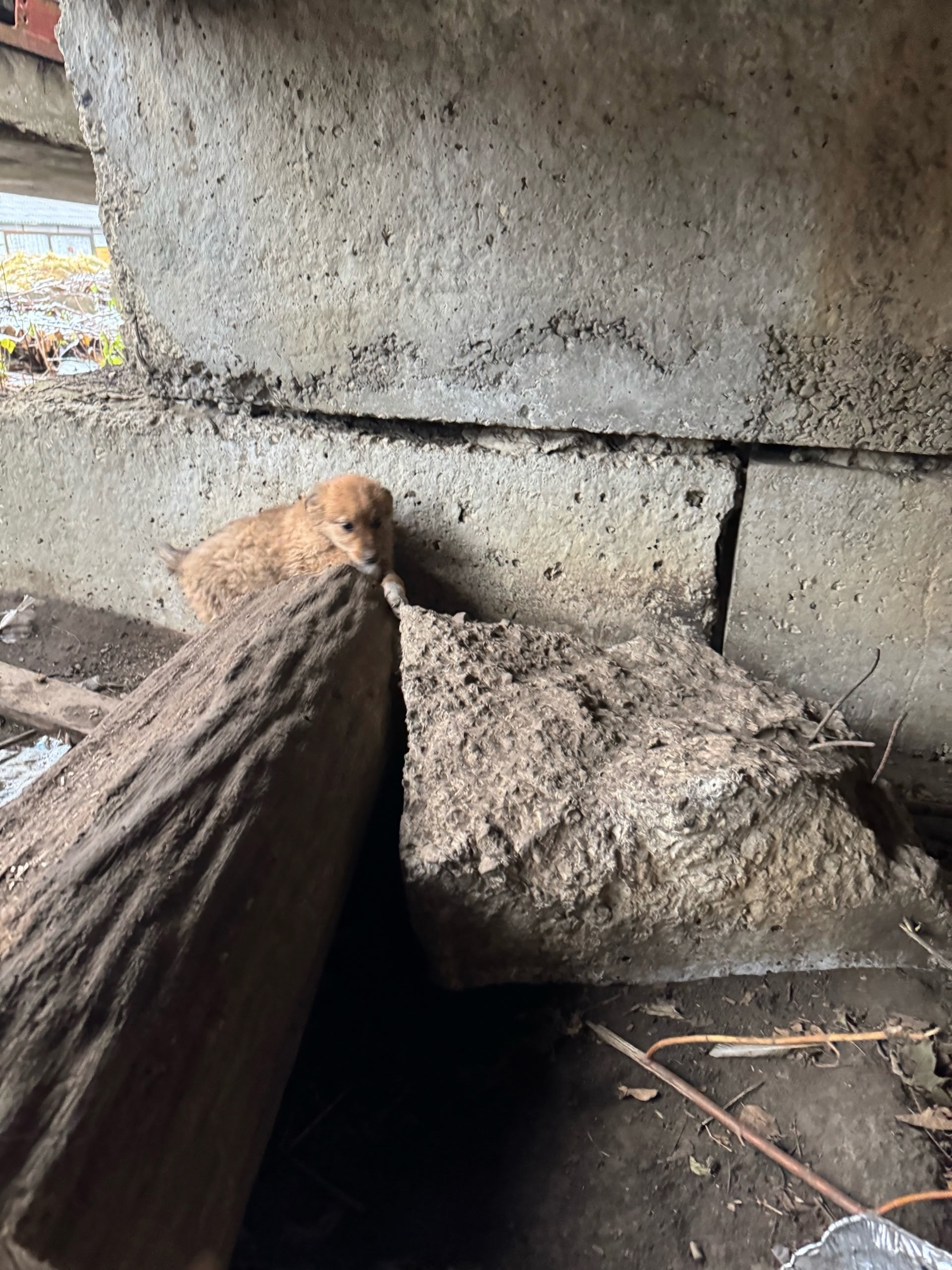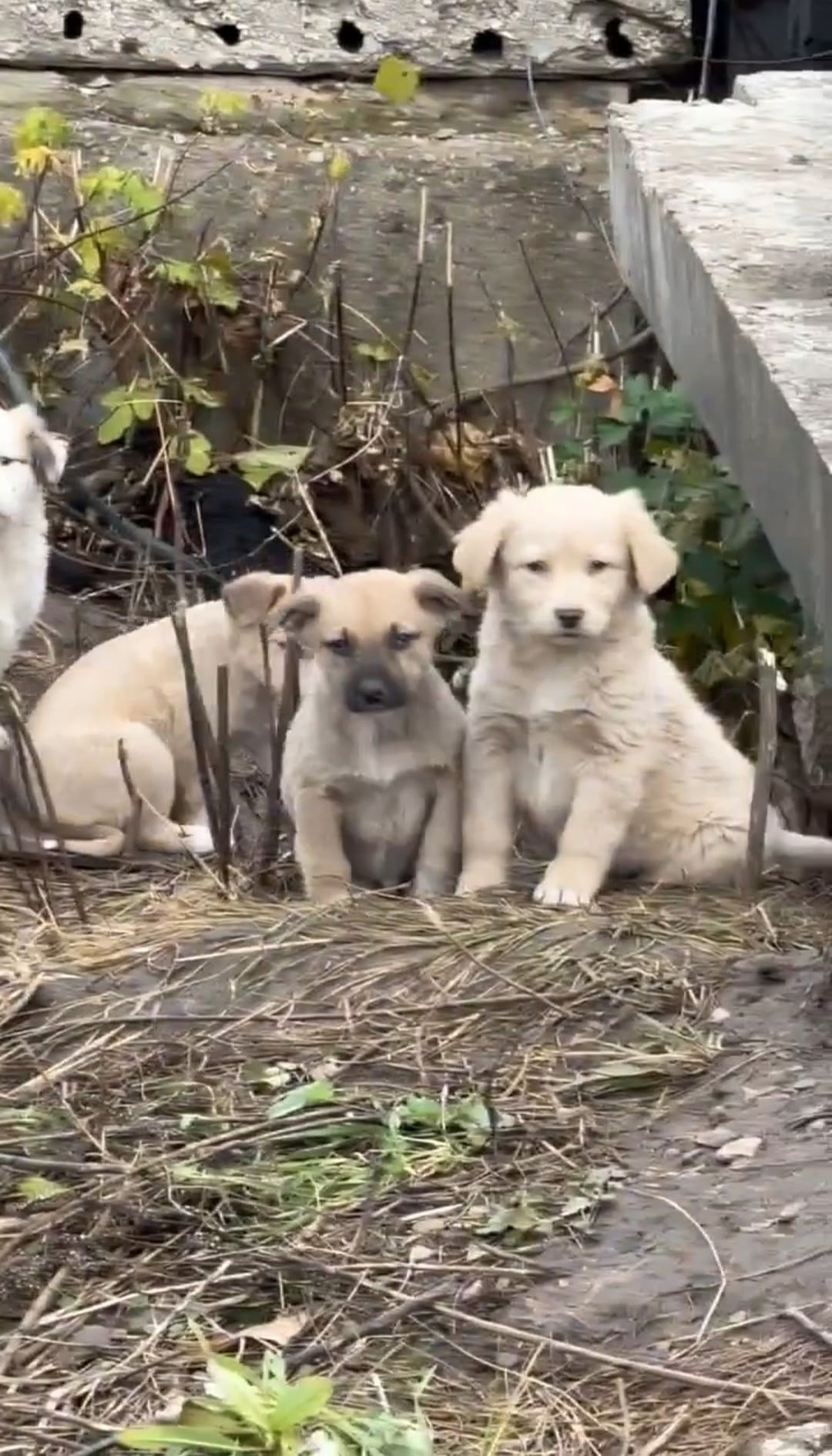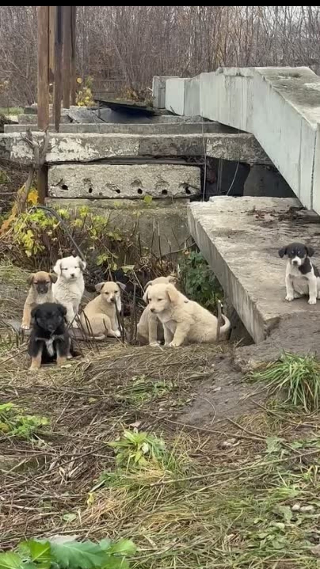 Спасите 9 маленьких щенят и худенькую маму. Они замерзают и голодают. Мы случайно их обнаружили, под каменной плитой. Ходим кормить, щенки очень ласковые.