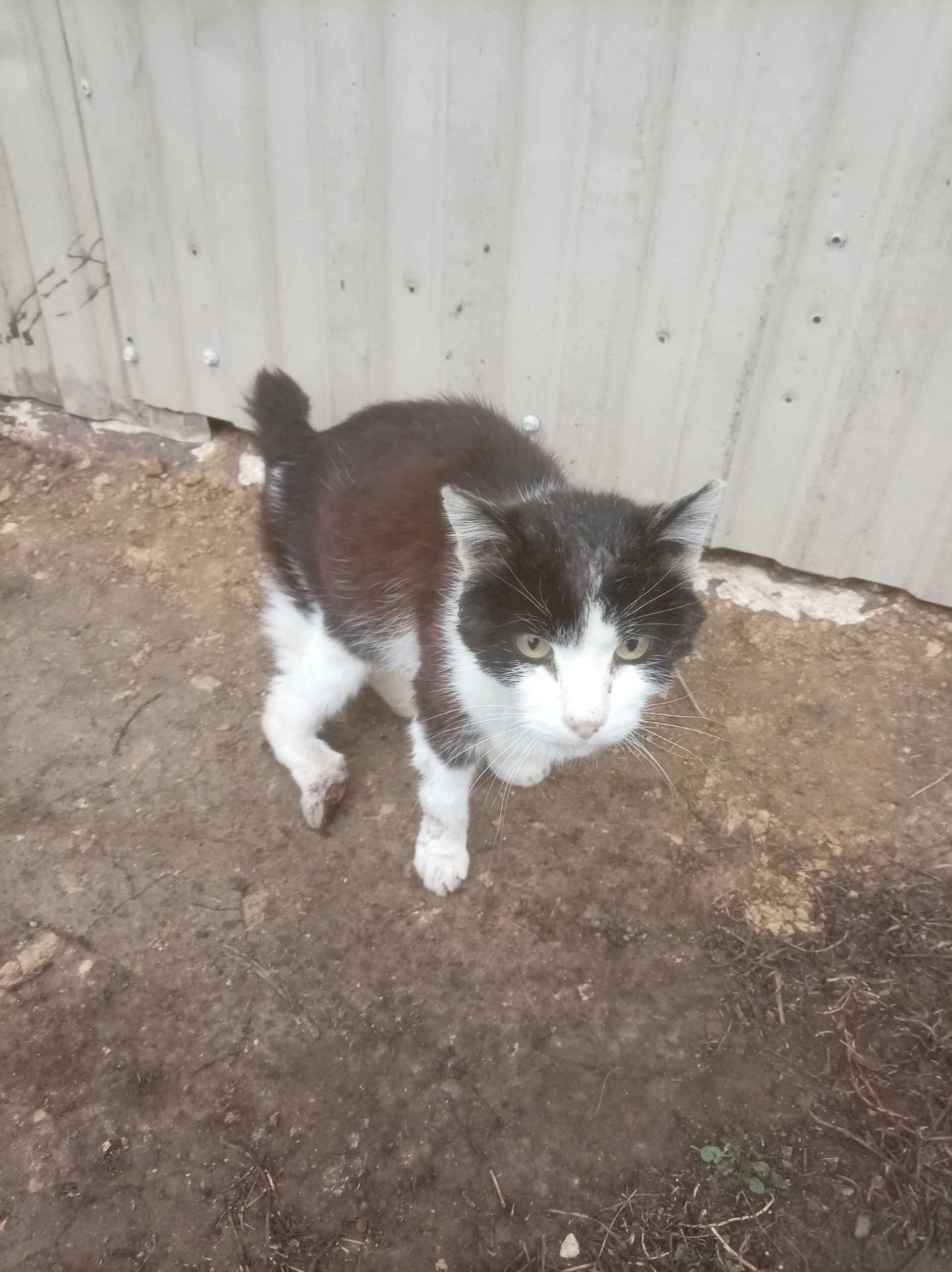 Приблудился ещё весной, но так как хозяйский кот гонял его нещадно, то почти не появлялся. Люди видели его, но на контакт животное не шло!