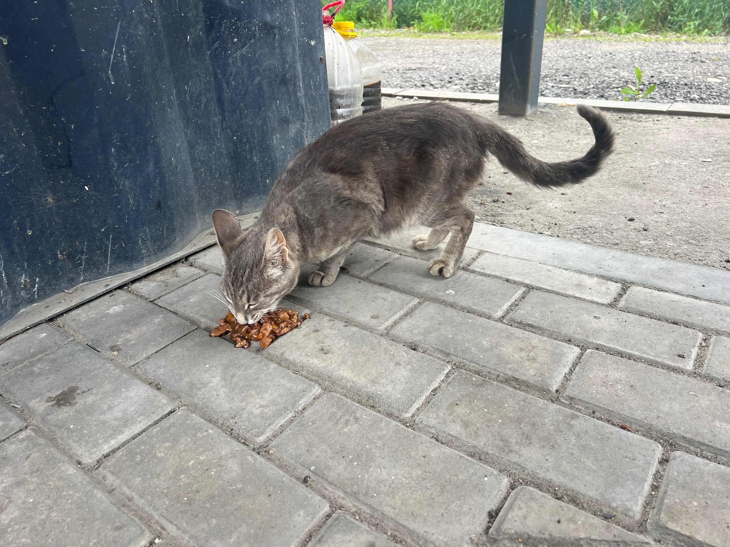 В деревне Давыдовское, где располагаются различные объекты, месяц назад поселилась кошка, контактная и красивая! Родила прекрасных хвостиков (4 штуки).