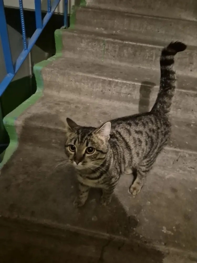 В подъезде многоэтажки появился кот. Ласковый. Ищем старых или новых хозяев.