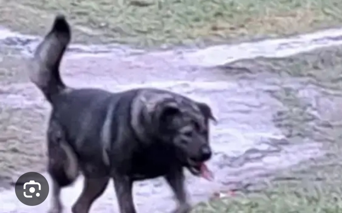 Кобель серый, крупного размера, на шее вместо ошейника, оторван, похож как на удавку .