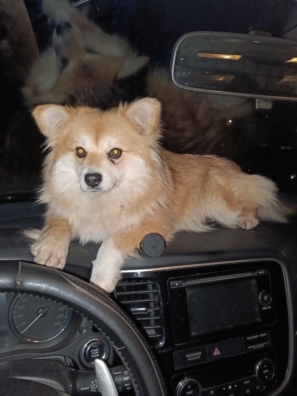 Найдена сука, метис шпица. Бегала по деревне неделю.